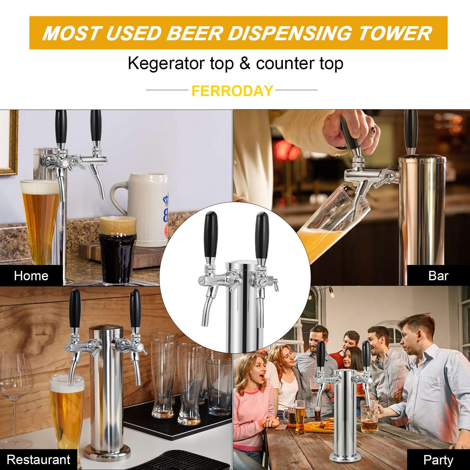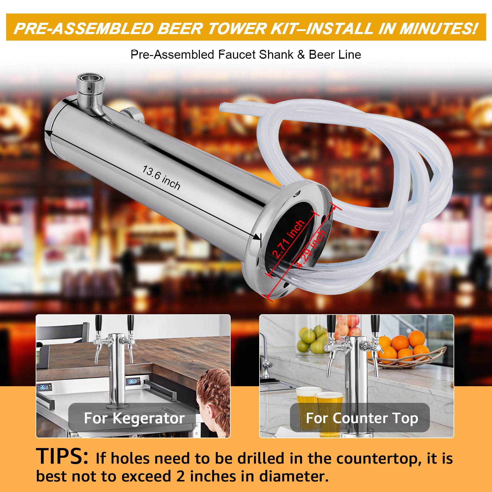 Solid Construction Every Part for No Leak & No Loose: Stainless Steel Draft Beer Tower with standard threads for faucet installation, further fix with faucet wrench, no leaks & no loose. Popular for indoor/ outdoor family gatherings or commercial applications like bars, hotels, restaurants, etc