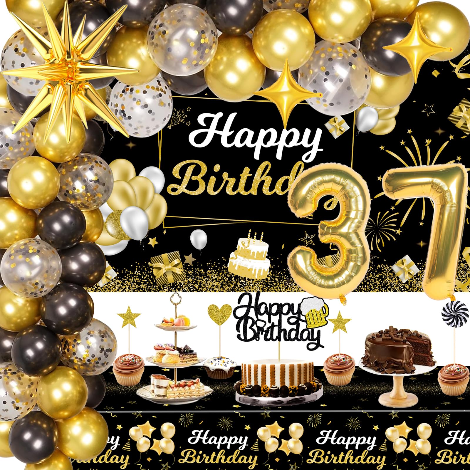 🎈Gold 37th Birthday Decorations: Our 37th birthday decorations with backdrop banner, tablecloth, balloons arch are definitely a perfect 37th birthday gift for him. Black and Gold theme decorations are suitable for men’s birthdays party.