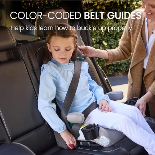 Belt Guides: This booster features color-coded belt guides to help kids learn how to buckle up properly and a shoulder belt guide to help keep the seat belt in the correct position