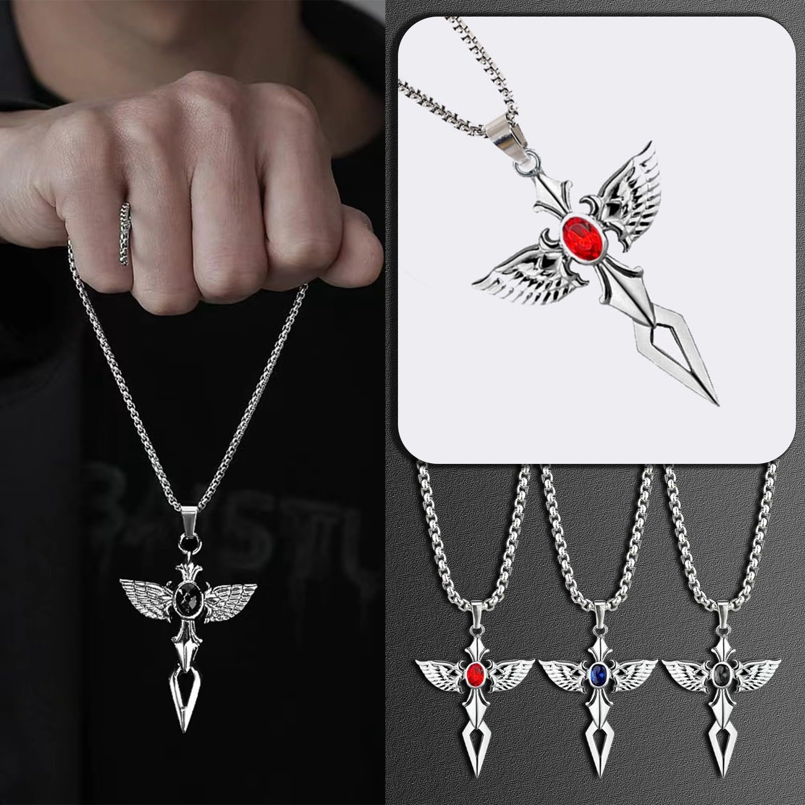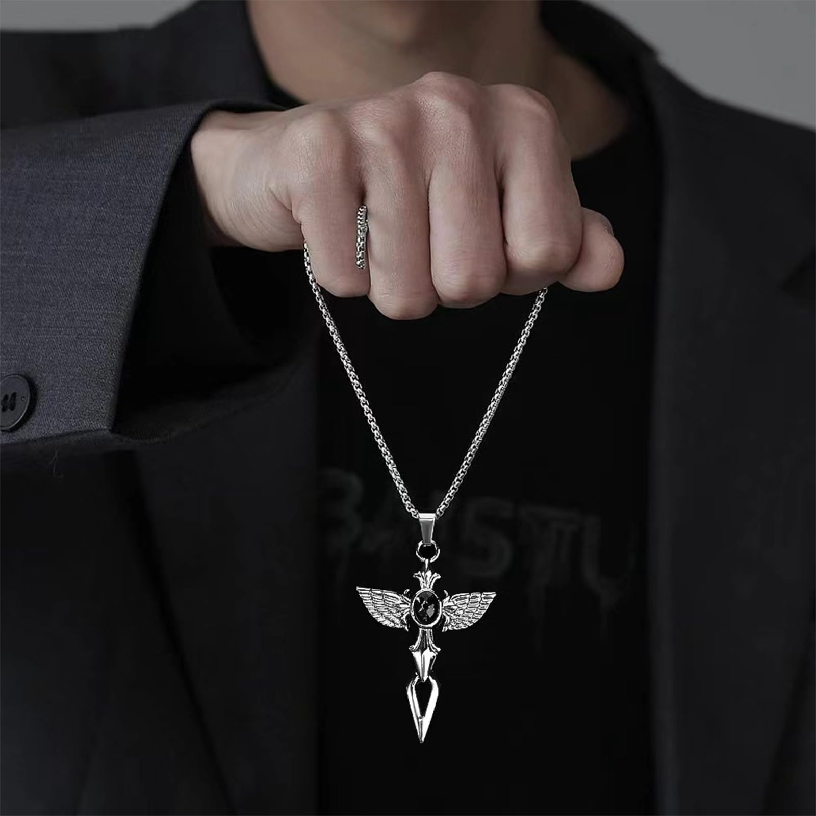Zinc-alloy pendant, with stainless steel chain.