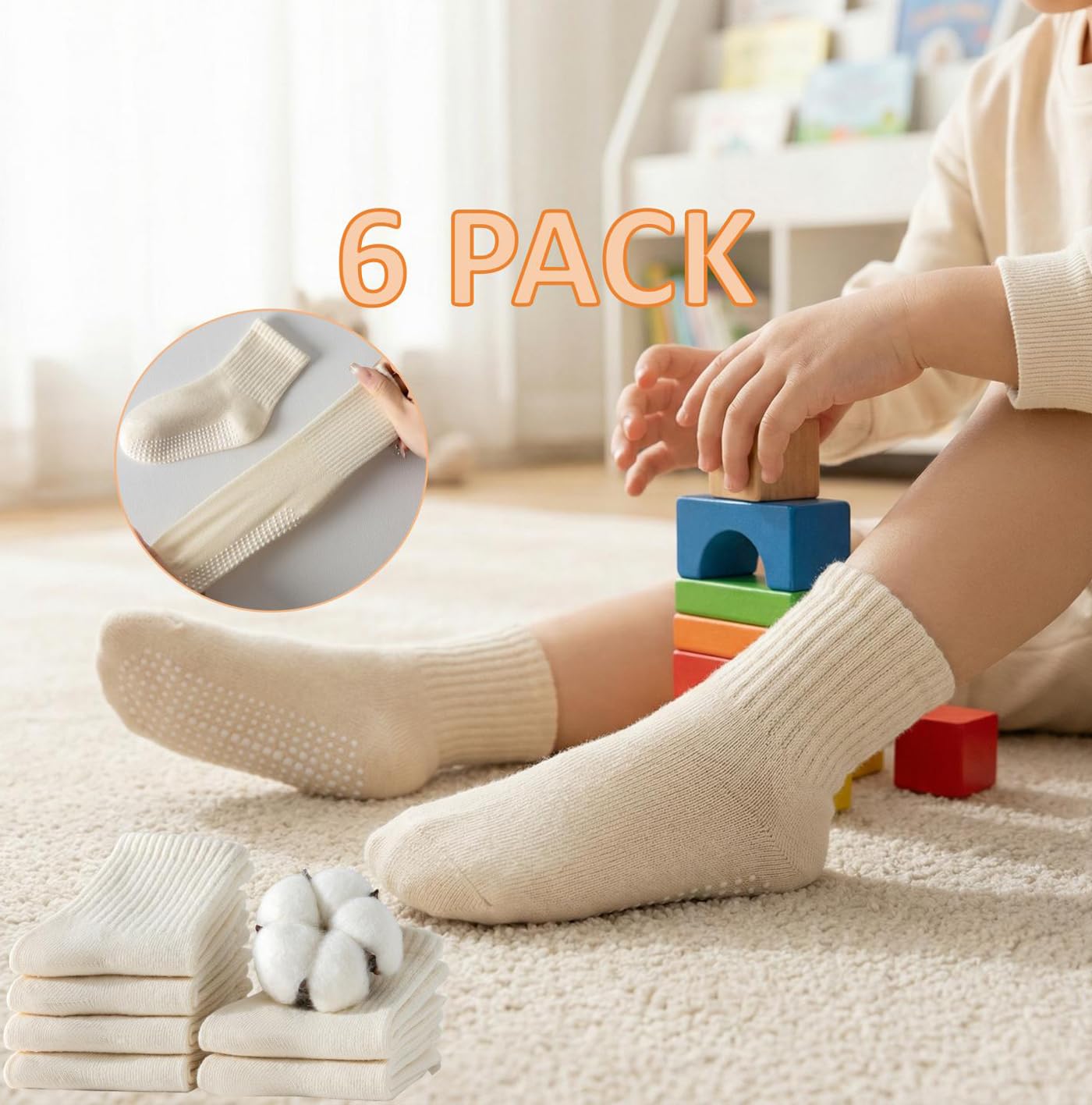Infant Safety-First Non-Slip Grip Socks:the textured grip pattern enhances balance while crawling or walking, reducing slips without compromising softness.