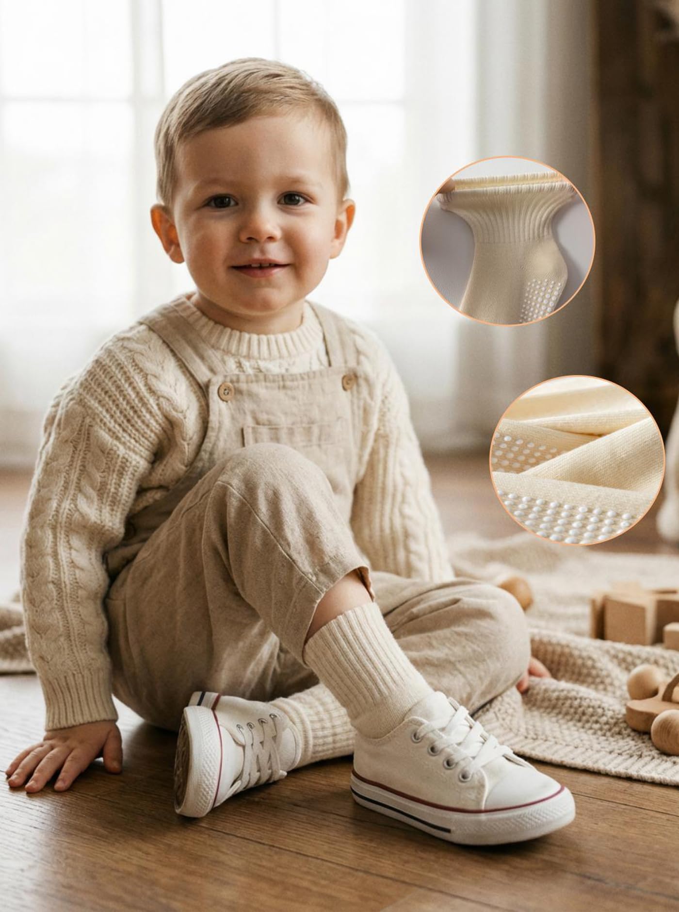 Premium Quality Material: Baby socks crafted with 80% high-grade combed cotton for ultimate softness, 15% nylon for durability, and 5% spandex for gentle stretch.