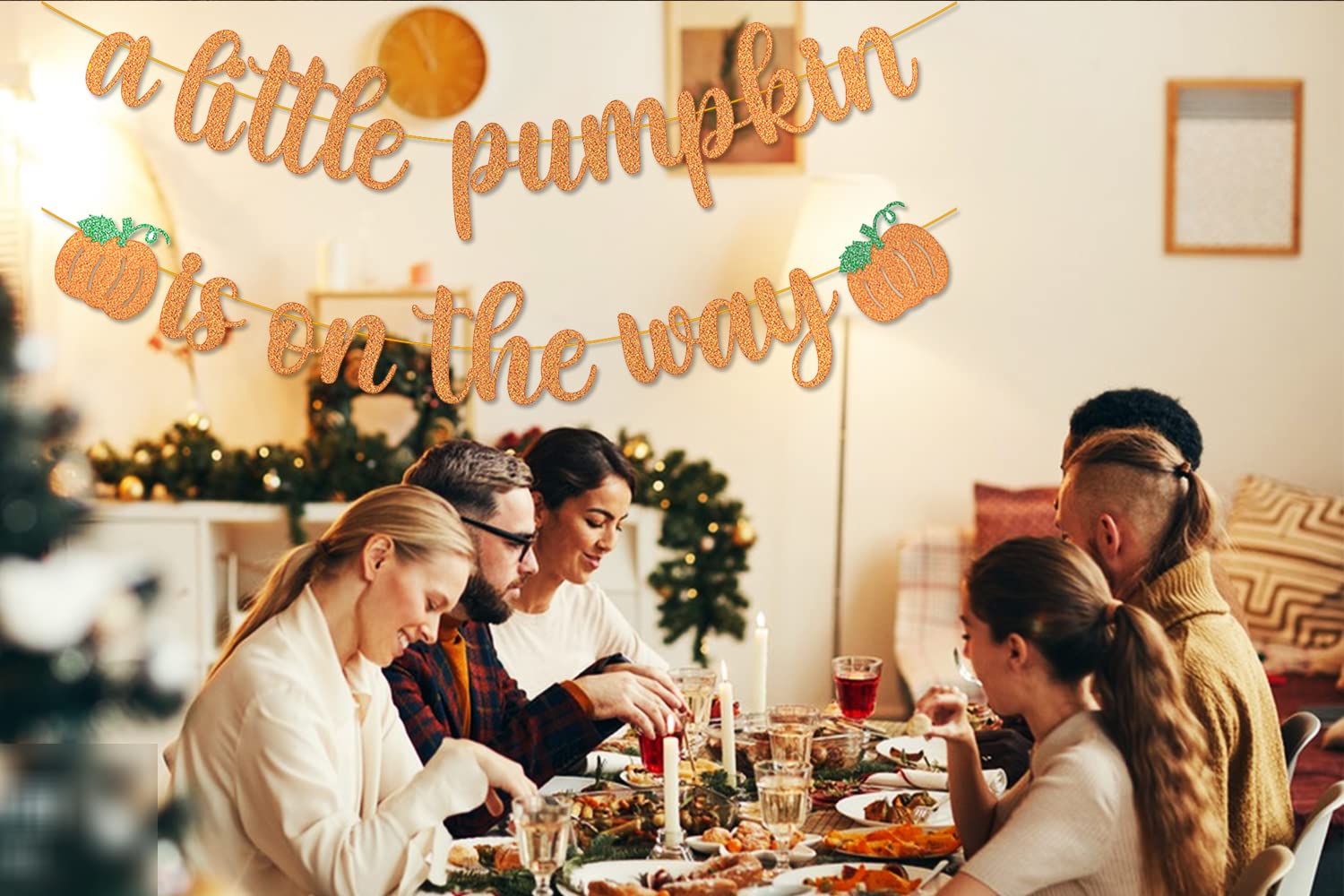 Package Includes: 1Pcs orange glitter "a little pumpkin is on the way" banner with 2pcs pumpkins.This little pumpkin banner will definitely make your pumpkin themed gender reveal party fabulously favorite and meaningful