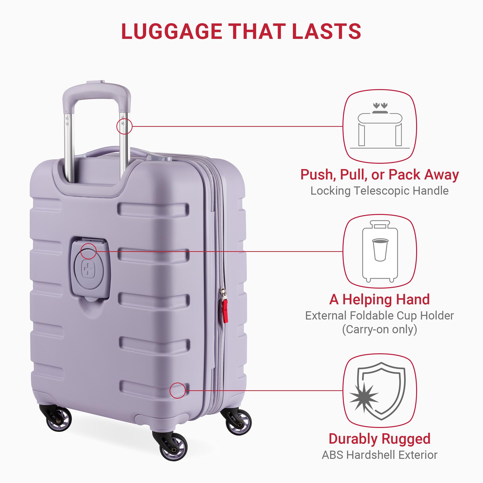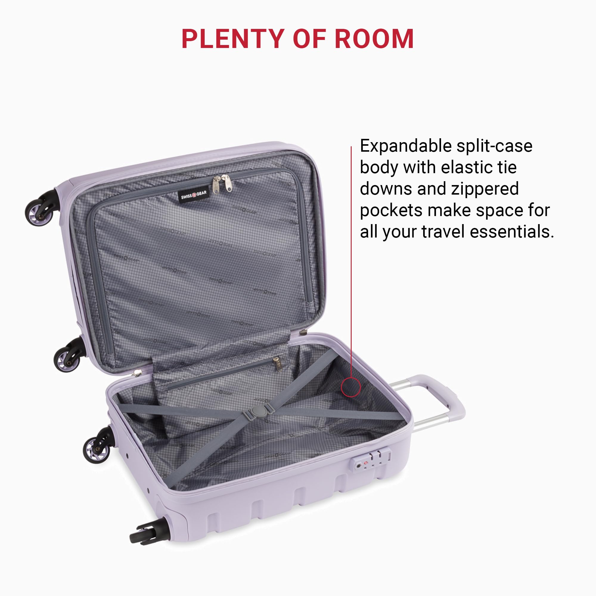 Description SwissGear 7366 Hardside Expandable Luggage with Spinner Wheels is the perfect carry-on luggage for your next trip. This 18-inch suitcase is made of durable, lightweight ABS and features a split-case design that expands for additional packing space with a variety of internal pockets to keep you organized. The four 360-degree multi-directional spinner wheels and a premium, push-button steel locking telescopic handle make it easy to navigate through the airport. With outside dimensions of 22 x 14.25 x 10 inches including wheels and handles, this suitcase offers 18.25 x 14 x 10 inches of packing space. This hardside luggage is perfect for those who need a lightweight and durable suitcase for their travels. The hardshell exterior is designed to protect your belongings from the wear and tear of travel, while the spinner wheels and telescoping handle make it easy to move around. Plus, this suitcase comes with a 10-year warranty against defects in materials and workmanship.