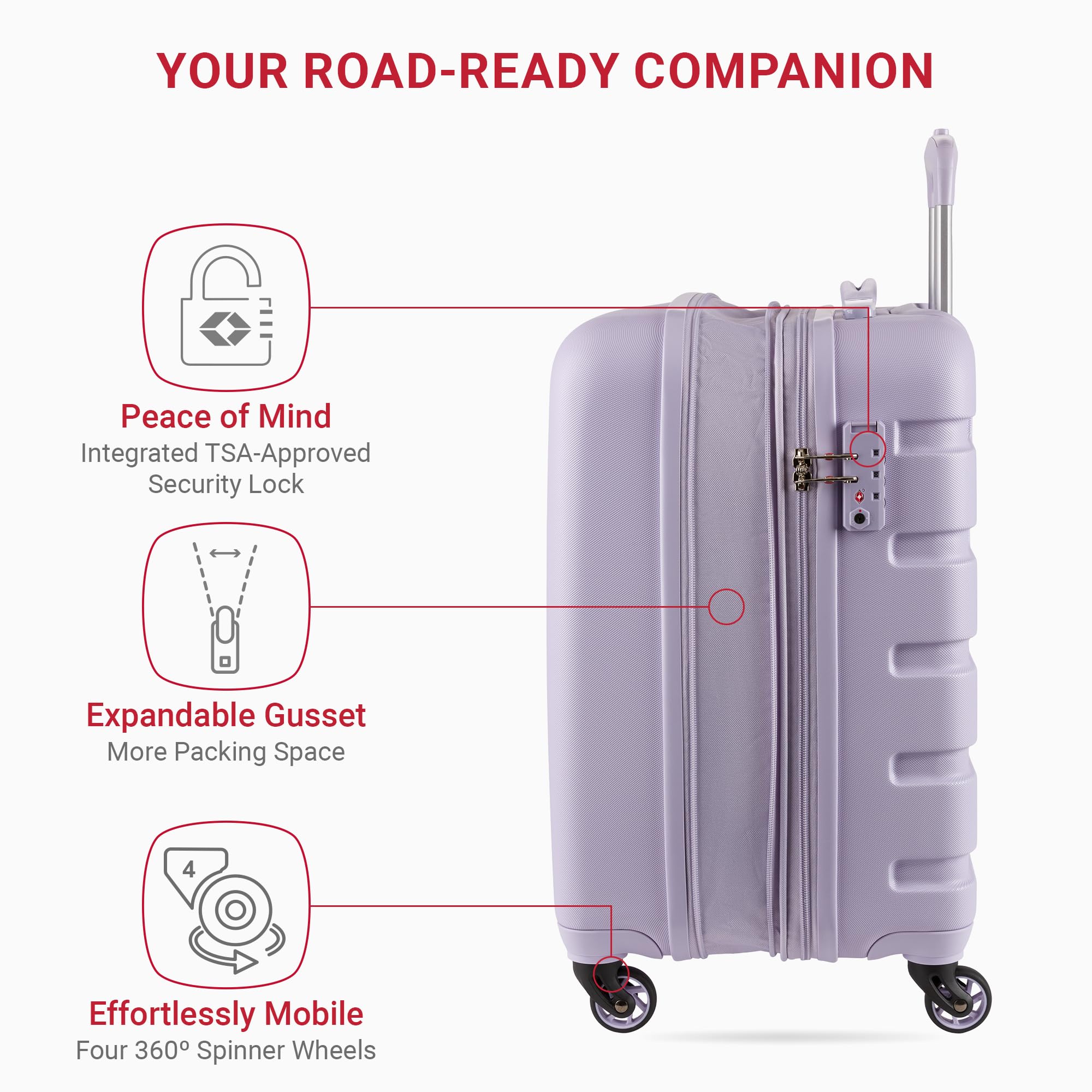 Expandable Carry-On Luggage: With 18.25 x 14 x 10 inches of packing space and a convenient fold-out cup holder, this rolling suitcase is the perfect size for any trip; At only 22 x 14.25 x 10 inches overall, it fits all your travel essentials without the extra bulk