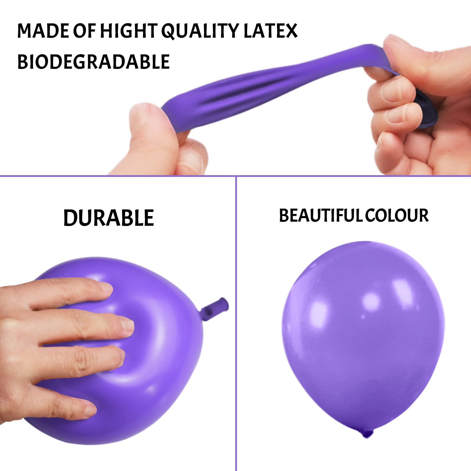 Wide application:These 5 inch purple balloons kit is perfect for bitc.rthday parties, baby showers, bridal shower, New Year party, holiday party, Anniversary celebrations, Dances, Christmas, balloon bouquets, party games.