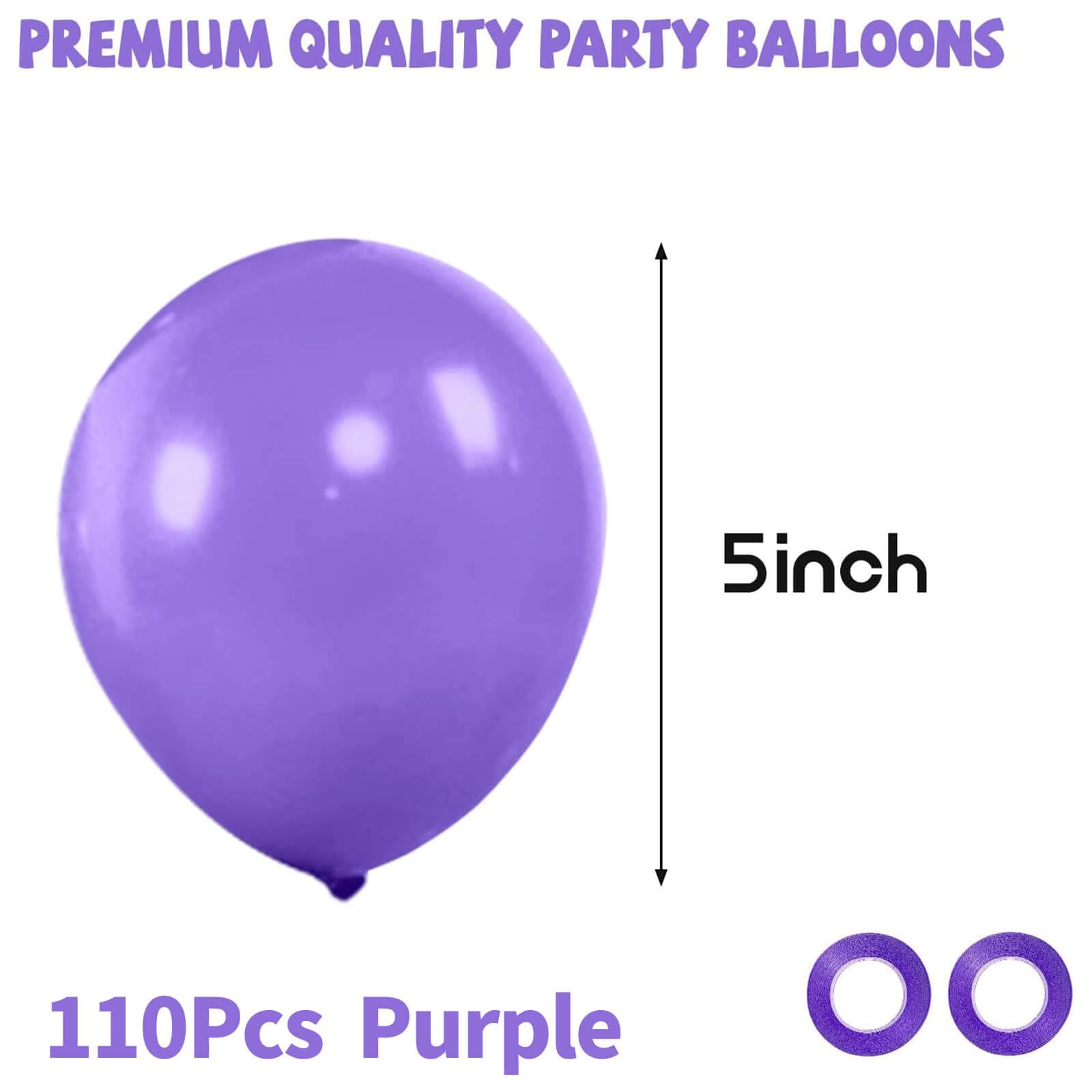 5 Inch purple balloons pack contains 110 pcs purple balloon and 2ribbon