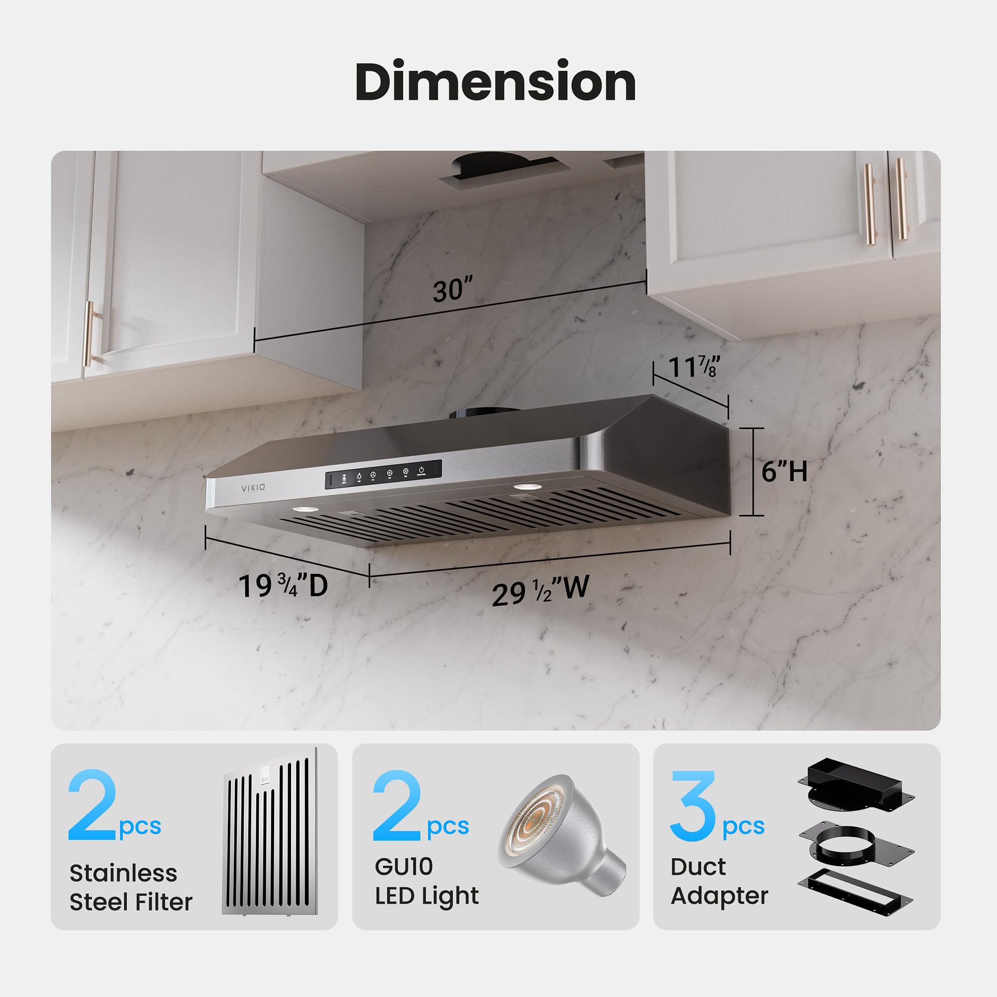 [Stainless Steel + Durable + Fingerprint-Resistant] This under cabinet stove hood is built with commercial-grade stainless steel and widened filters for long-lasting durability and efficient grease capture. Ideal for busy households, it is smudge-proof and fingerprint-resistant for easy cleaning, extending its service life to 10+ years.