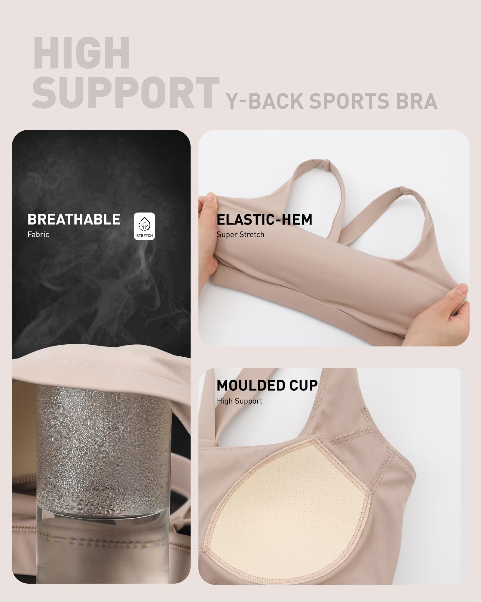 ✅ 【SWEAT OUT IN STYLE! 】: Made from a flexible four-way stretch fabric that supports your body as you move. Enjoy the freedom of movement as the open back styles aim to keep you comfy and cool while you bring on the heat! Running sports bras for women with wide waist band for that support we all need!