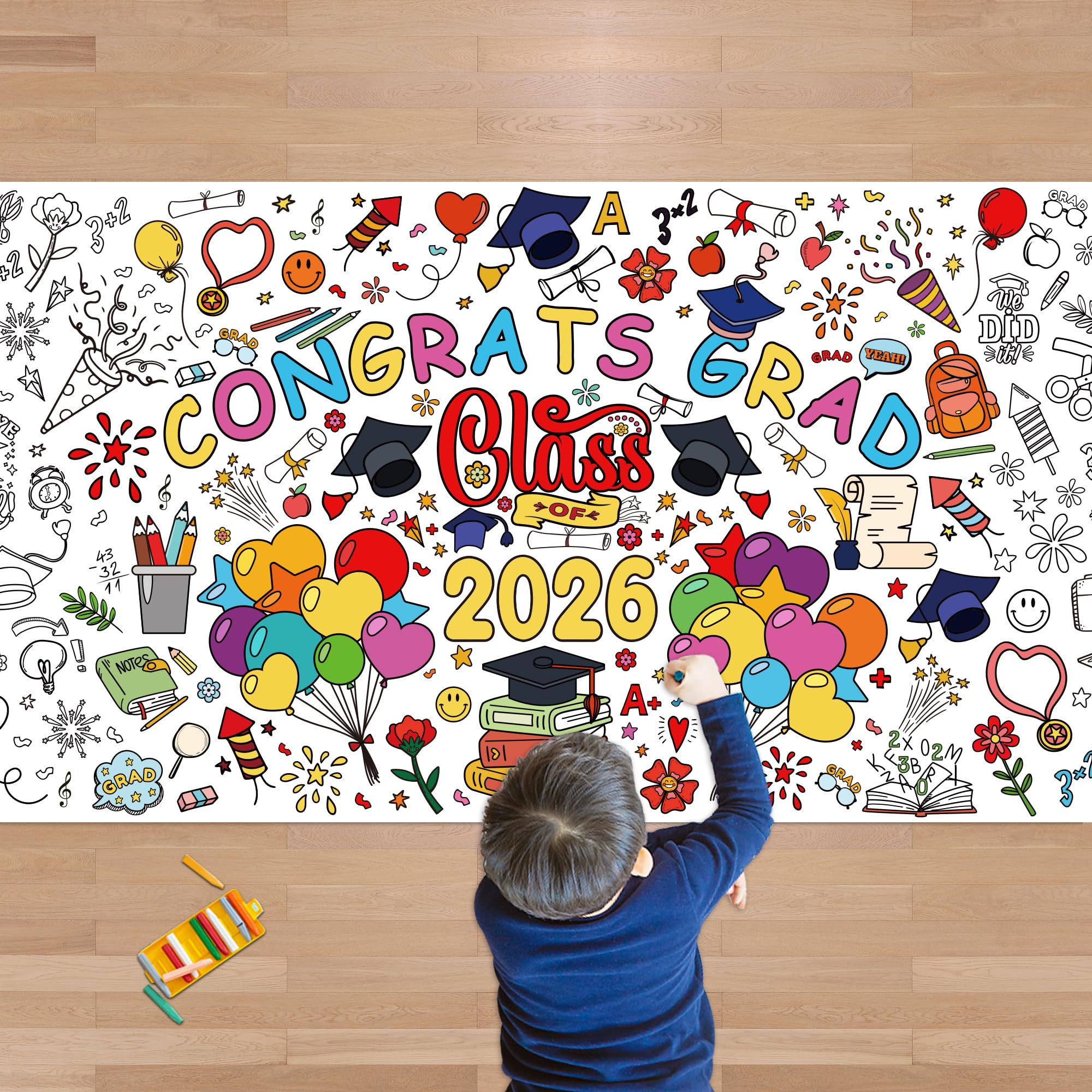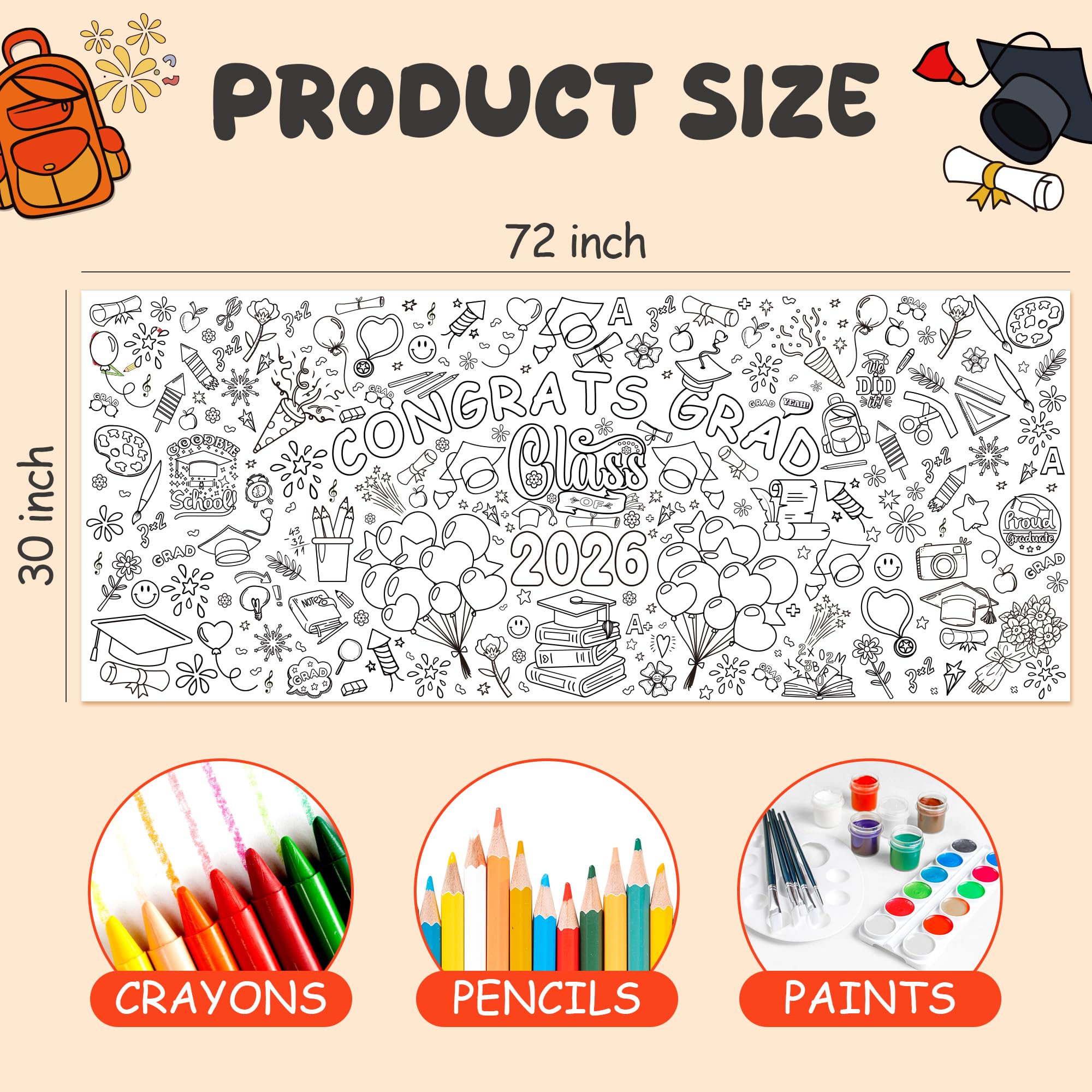 [Beautifully Designed Crafts]:Great Graduation gifts for kids!Get ready to celebrate Graduation in the most creative way! This coloring poster/tablecloth is perfect for kids and adults who love to express their artistic side.