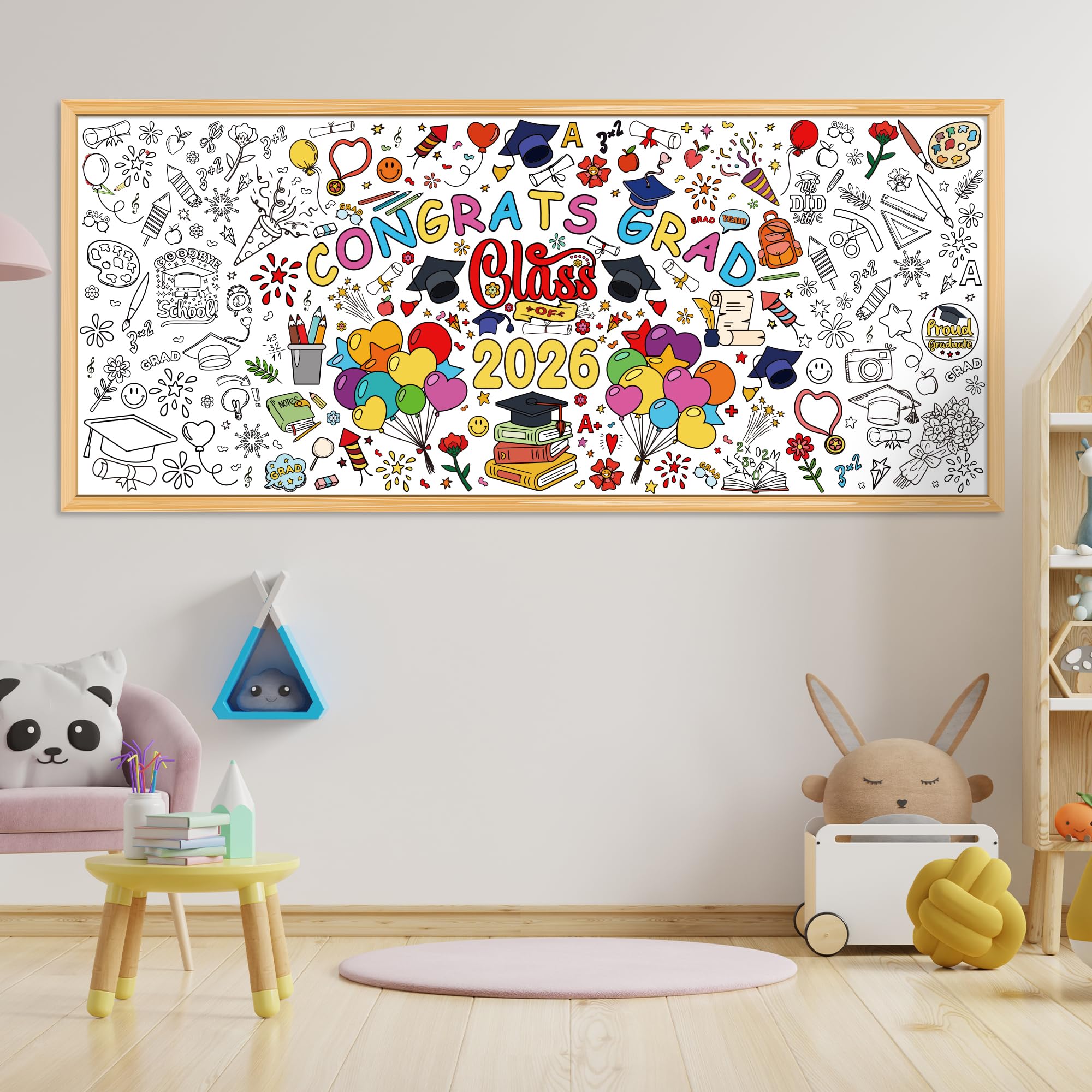 [Giant Coloring Poster]:Graduation banner.The size of this large coloring poster not only helps create a large arts and crafts area...it also can serve as a tablecloth, keeping your table clean from the kid's messes.kindergarten graduation gifts.