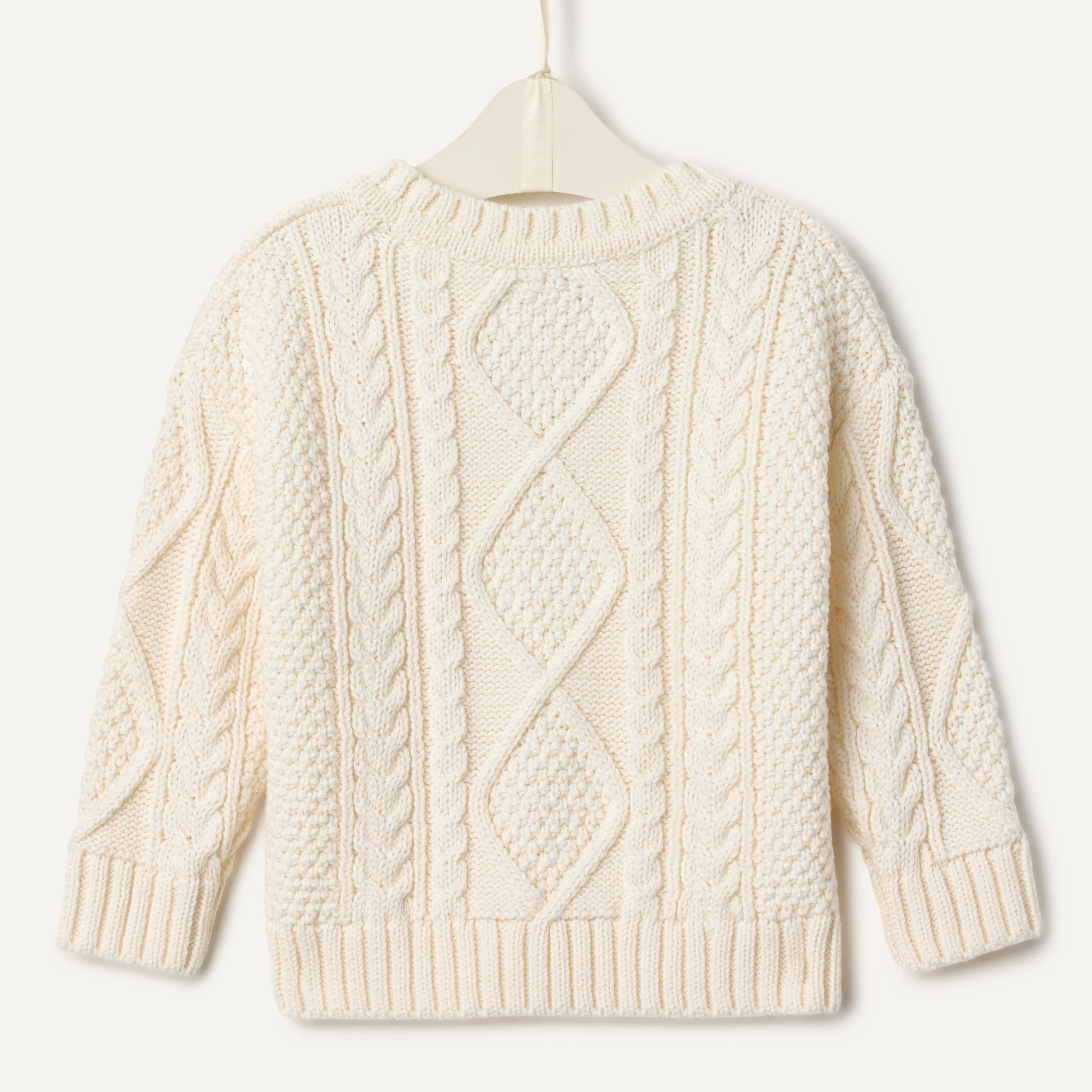 DETAILS: A classic cable design with soft ribbing at the neck, sleeve cuff, and bottom hem