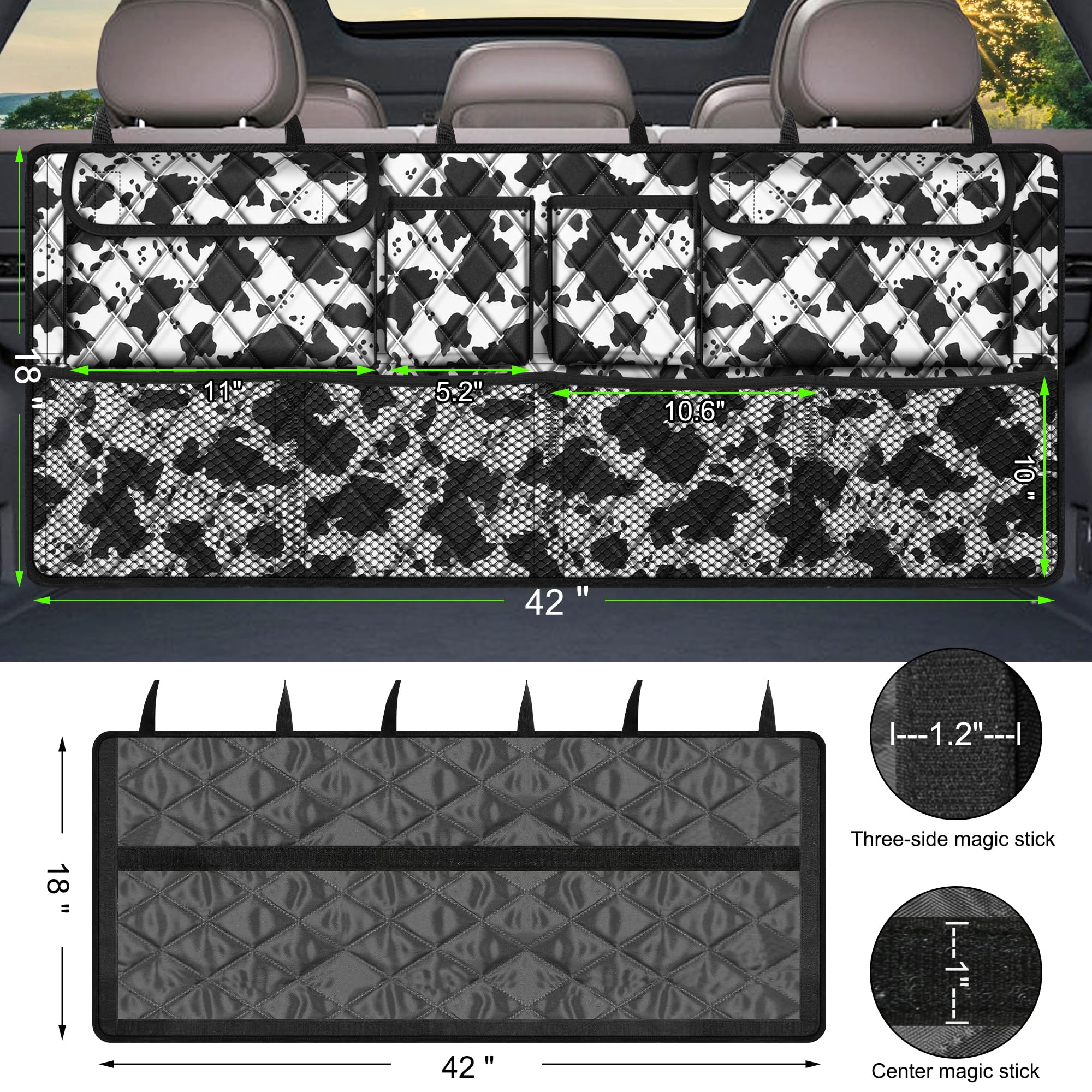 【NOTE】 Our suv trunk organizer of reinforcement strip are magic stick, suitable for seat back for felt material, not for leather, glossy, or suede.