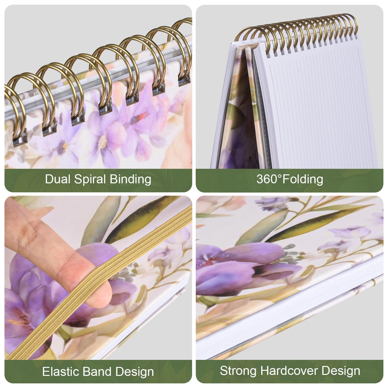 🪻【Sturdy Spiral Binding】The spiral notebook is bound with gold twin-wire binding, the wirebound is not easy to loosen, ensuring smooth page turning(flip through). The notebook can be folded 360°, so you can write anywhere, anytime, regardless of the occasion.