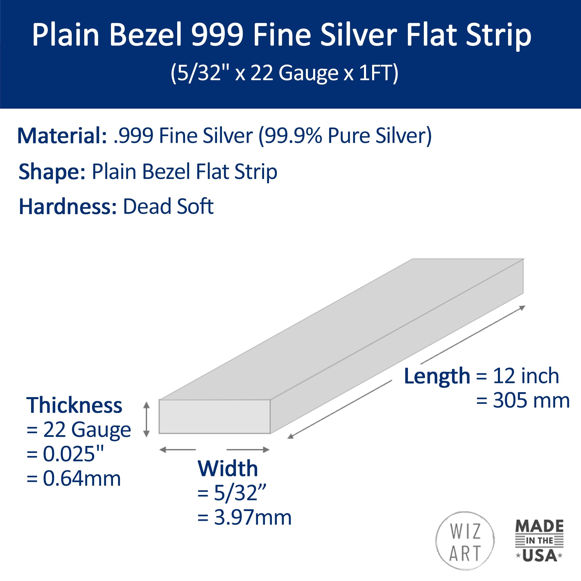 Strip sizes: (5/32" x 22 Gauge x 1 Ft) = (0.156" x .025" x 12") = (3.97mm x 0.64mm x 305mm)