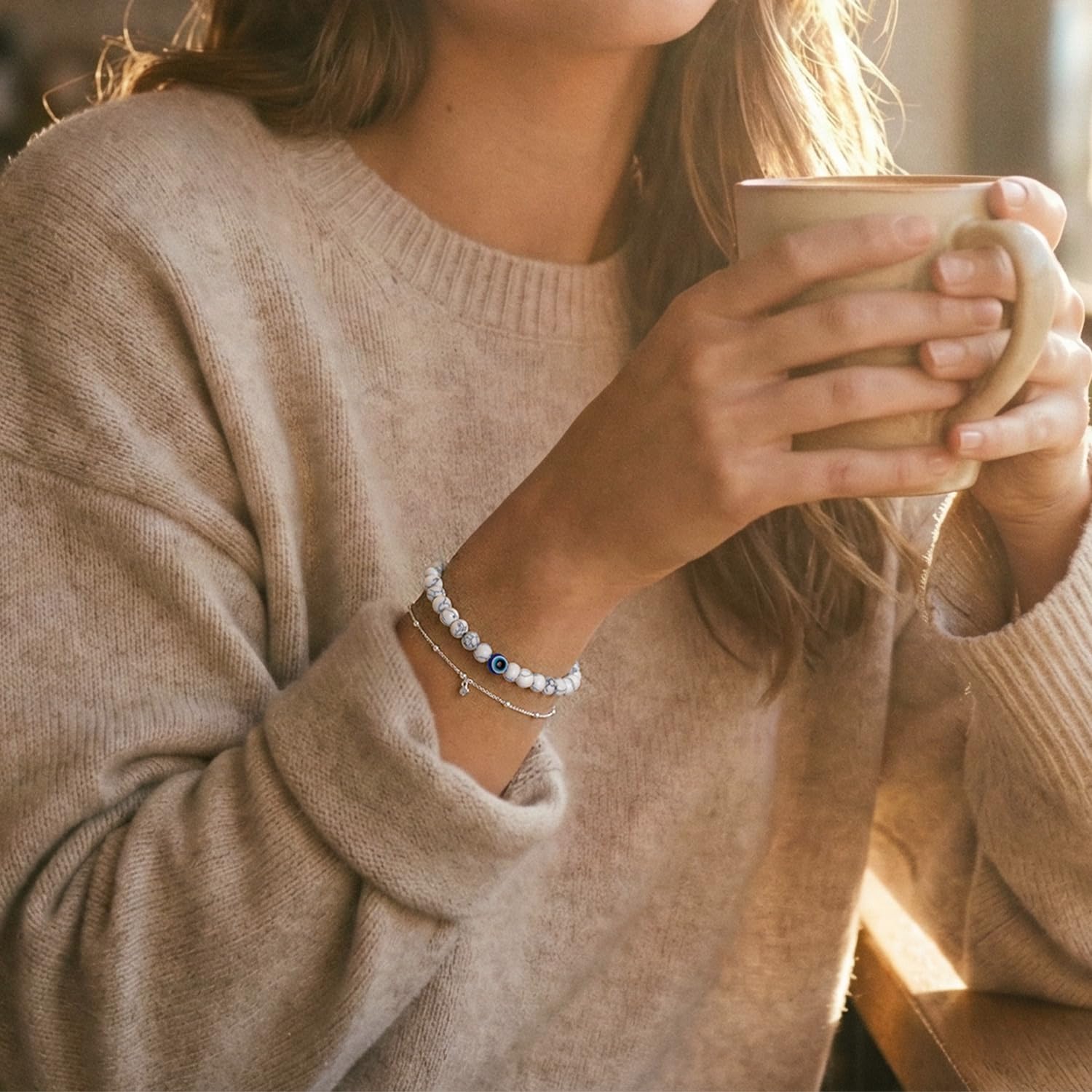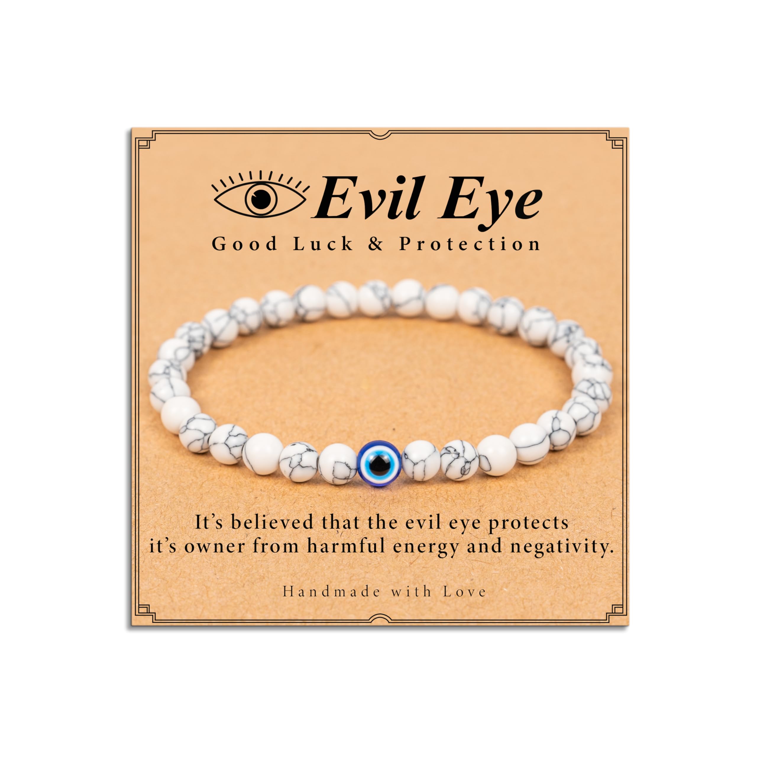 Eye-Catching Details: The intricate evil eye charm is the focal point, complemented by sleek beads or chains for a chic look.
