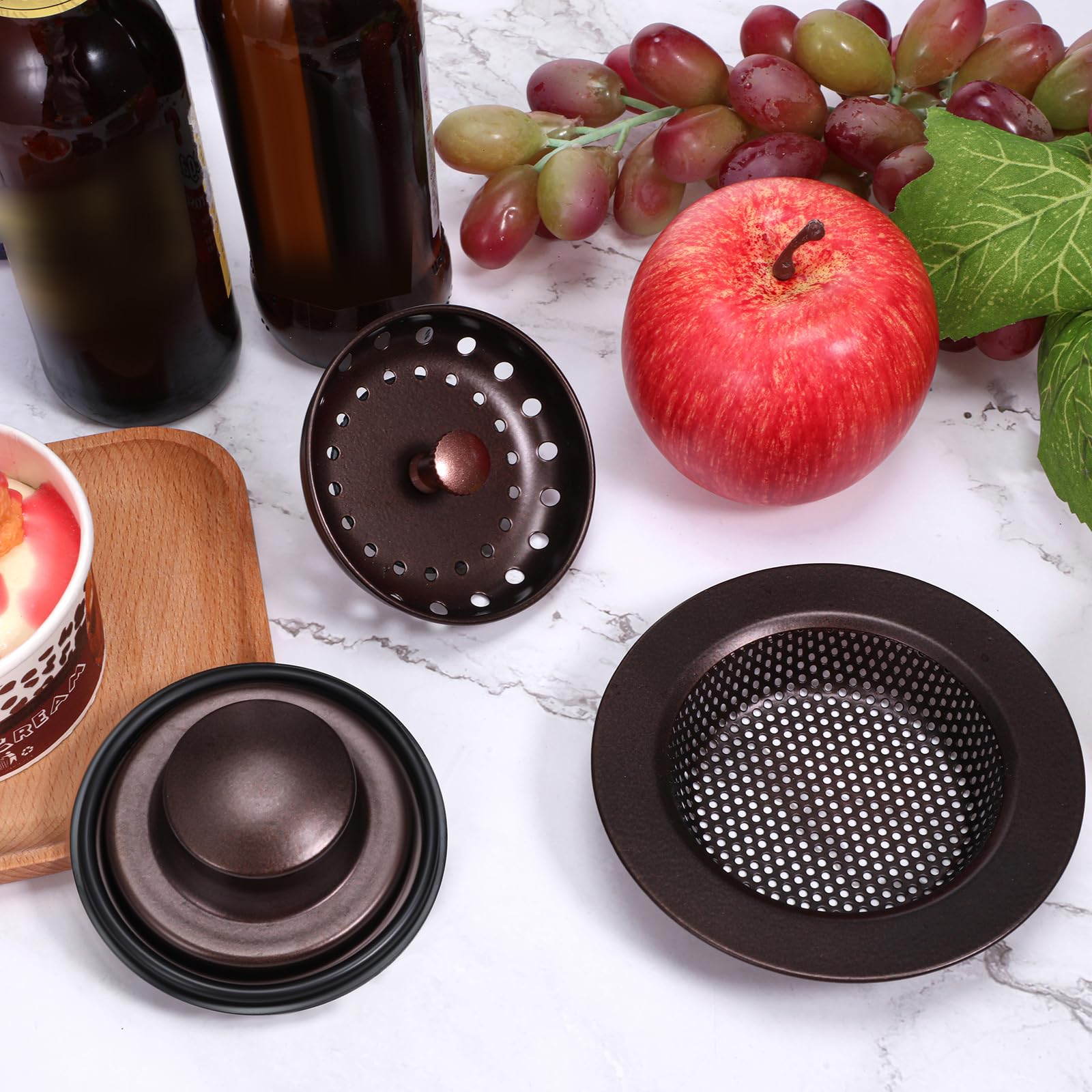 Universal Fit: the garbage disposal stopper and sink strain are in universal sizes, suitable for most 3-1/2 inch kitchen sink drains or old sink filters in United States; And the kitchen sink filter sieve is universal which fits most sink drains and garbage disposals; Note: the strainer fit the sink drains with a narrow rectangular hole in the center, please confirm your sink drain hole size before order