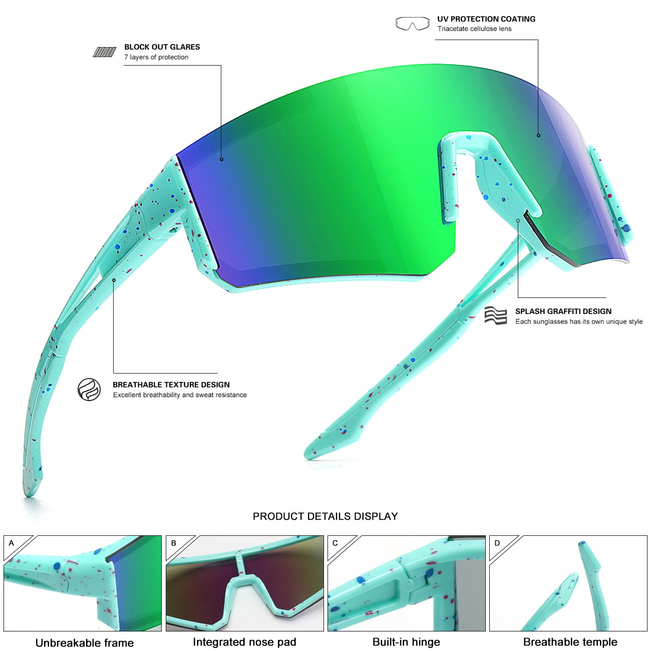 KIDS BASEBALL SUNGLASSES - fashion polycarbonate frames, enhancing the youthful style of teenagers. The wrap-around design offers better eye protection, providing a broader field of vision while effectively shielding the eyes from dust, wind, and other elements, ensuring comprehensive eye protection. Suitable for kids aged 6-12.