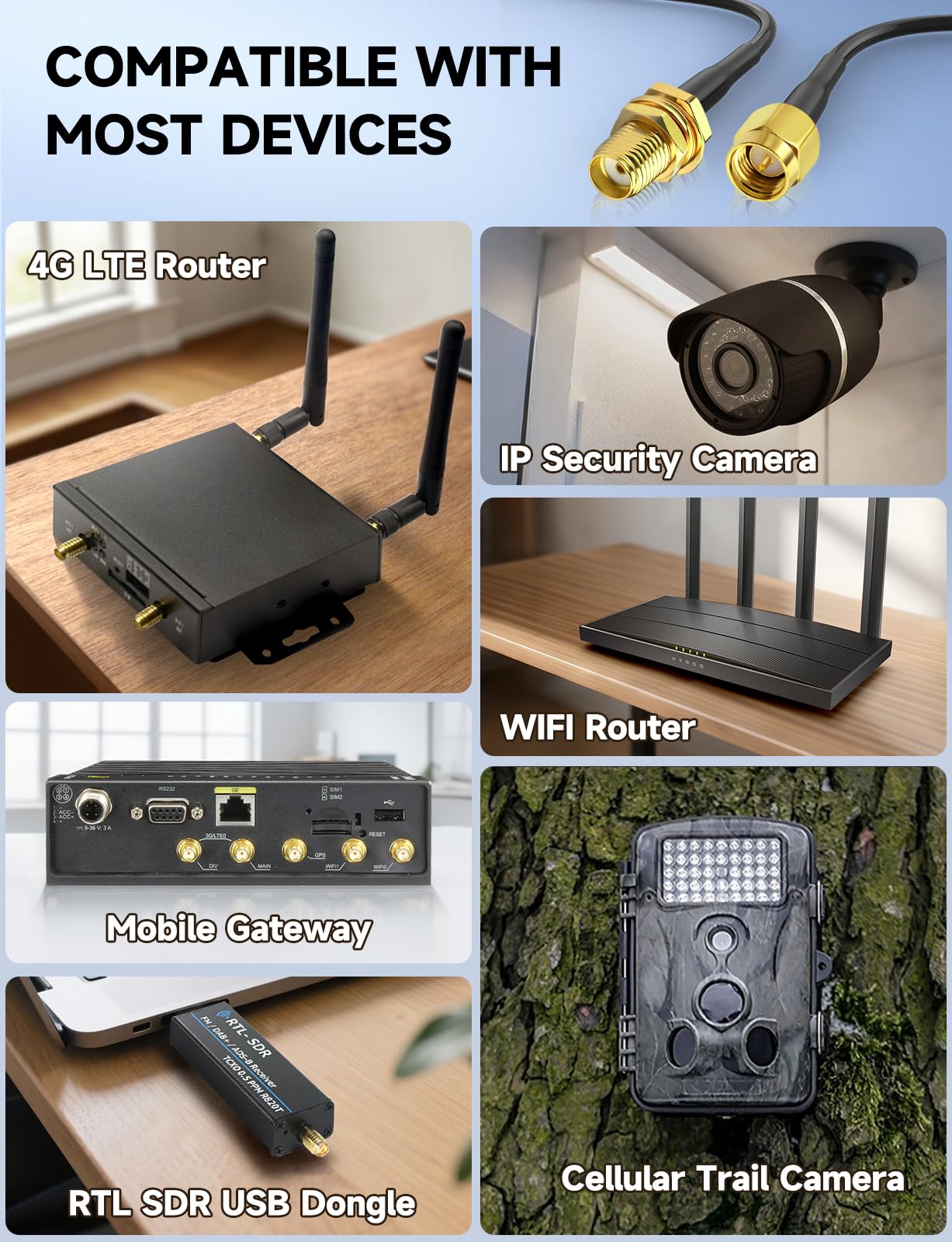 SMA extension cable is used for Network system, security system, FPV devices, wifi router,WLAN antenna, Wi-Fi, radio antenna, Bluetooth antenna, video, Amateur radio, 3G 4G LTE Antenna, GPS antenna, module, sdr rtl usb dongle, SDR Equipment Antenna, gateway etc.(NOT For TV)