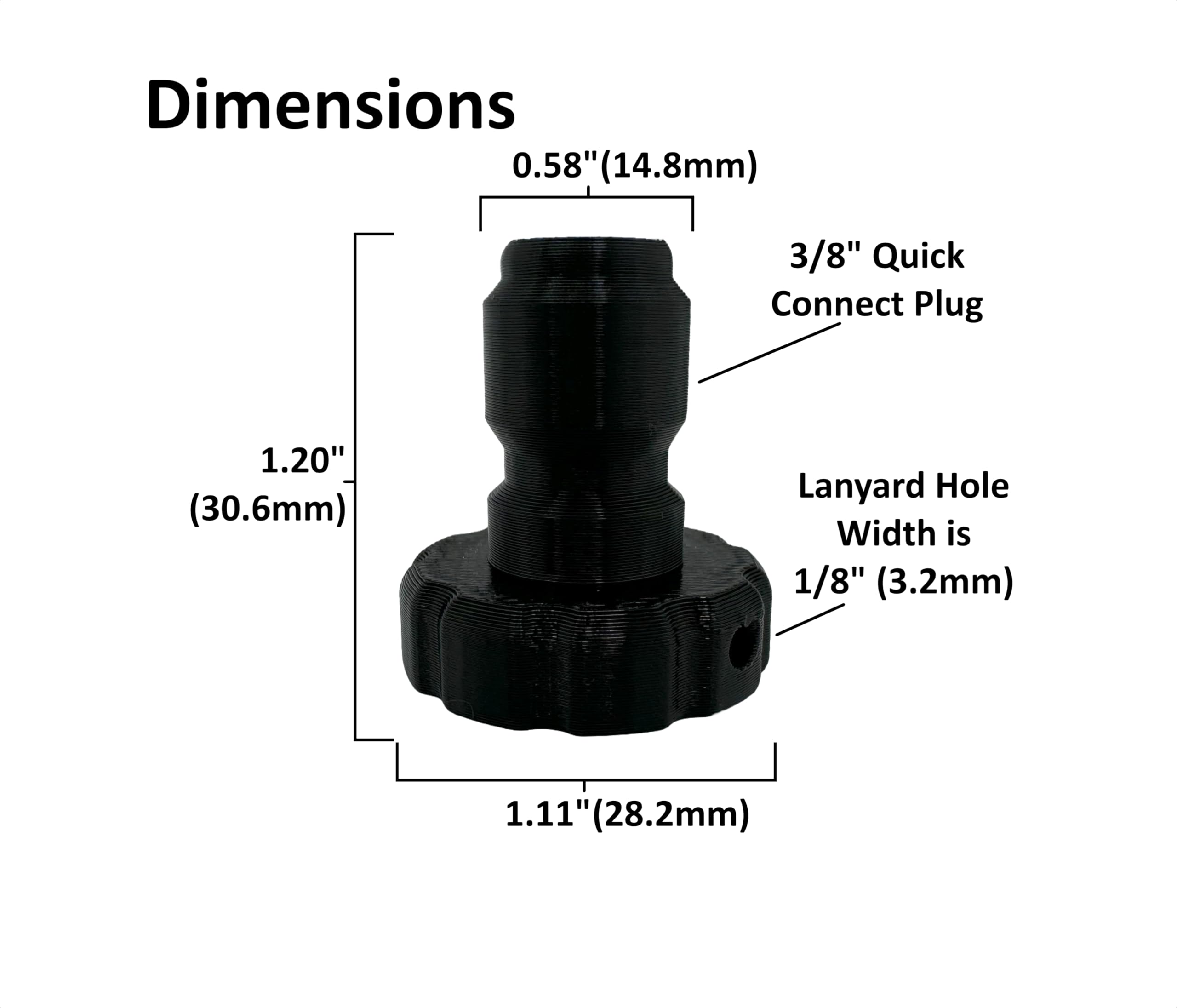 A simple yet sturdy solution to prevent dirt, trash, mud dauber nests, and other contaminants from getting in the female quick connect fitting(s) of your pressure washer hose when left unattended. Fits female 3/8" Quick Connect fittings designed for pressure washer hose. Designed and 3D printed by Whipptec in the USA, these plugs are printed with sturdy thickness to ensure excellent longevity and durability. As with all FDM 3D printed items there may be small artifacts here and there. This does not affect durability or usage it’s just looks. Feel free to ask questions! We at Whipptec are happy to help!