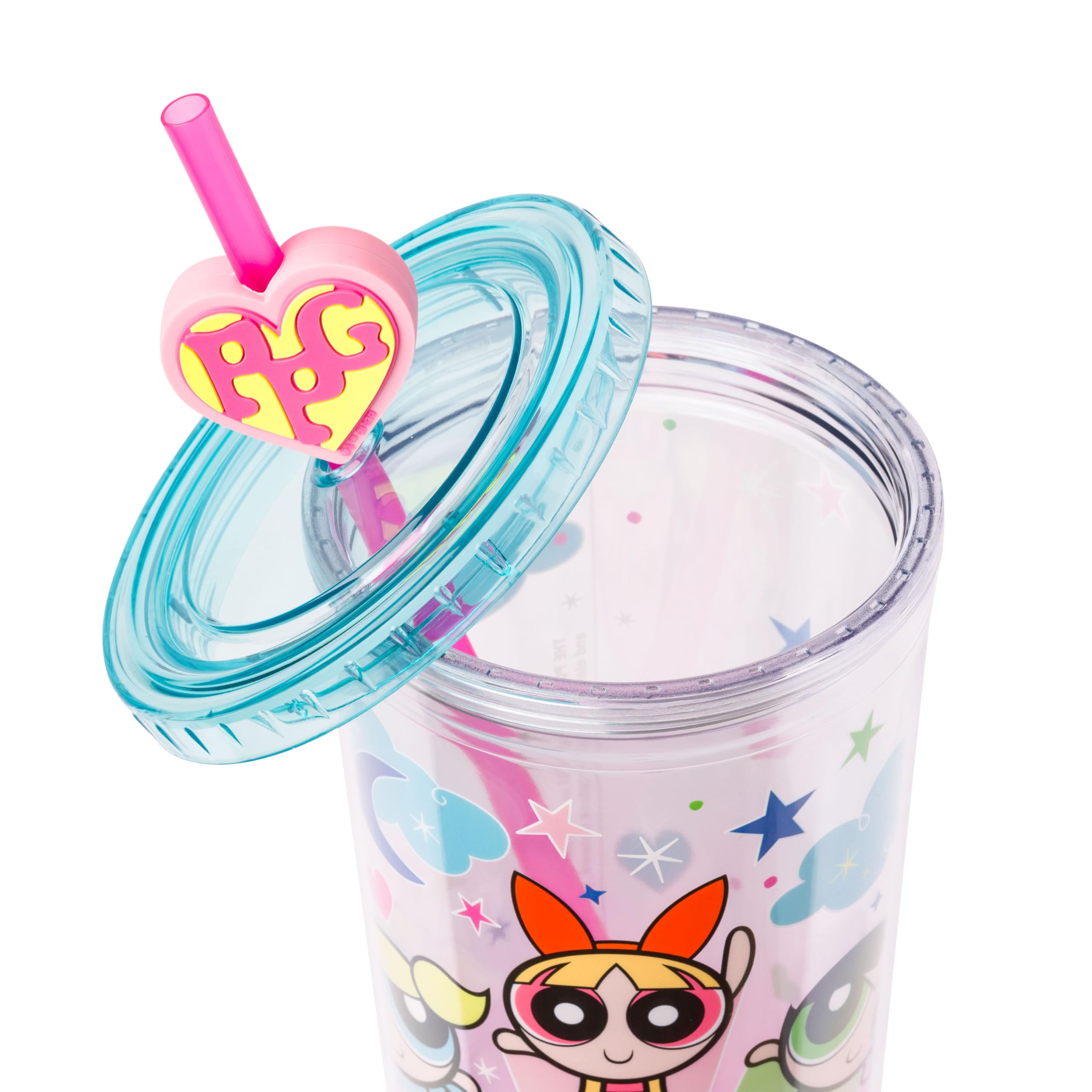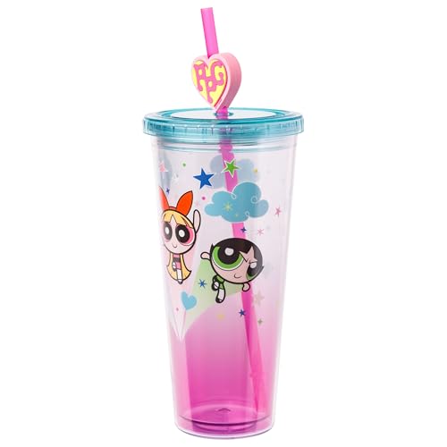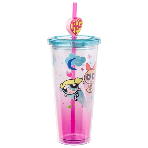Enjoy your favorite beverages in this themed cold cup! Cold cup features Powerpuff Girls trio, Blossom, Bubbles, and Buttercup. Surrounding the characters are stars, clouds, and hearts. Background of the cold cup is pink. Cup is complete with a blue lid and pink straw. Straw features an adorable heart topper that reads “PPG.” HAND WASH ONLY. NOT safe for microwave use. This cold cup holds up to 24 ounces of your favorite beverage. Cup comes with a secure lid and reusable straw making this the perfect cup to keep you hydrated while on the go. Whether you're on a road trip, at a sporting event, exercising, or enjoying a picnic, this tumbler is ideal for all your hydration needs. Fans of the Powerpuff Girls will enjoy this tumbler, making it the perfect gift. Great for birthdays, holidays, and other gift exchanges. Take a dive into the fictional world with Silver Buffalo! Silver Buffalo provides fans with official merchandise from their favorite characters. Working alongside licensors and brands, we create unique and imaginative products which are designed with great care and detail. Silver Buffalo aims to connect fans to their favorite cartoon characters, superheroes, movies, tv-series, and more. Celebrate your fandom!