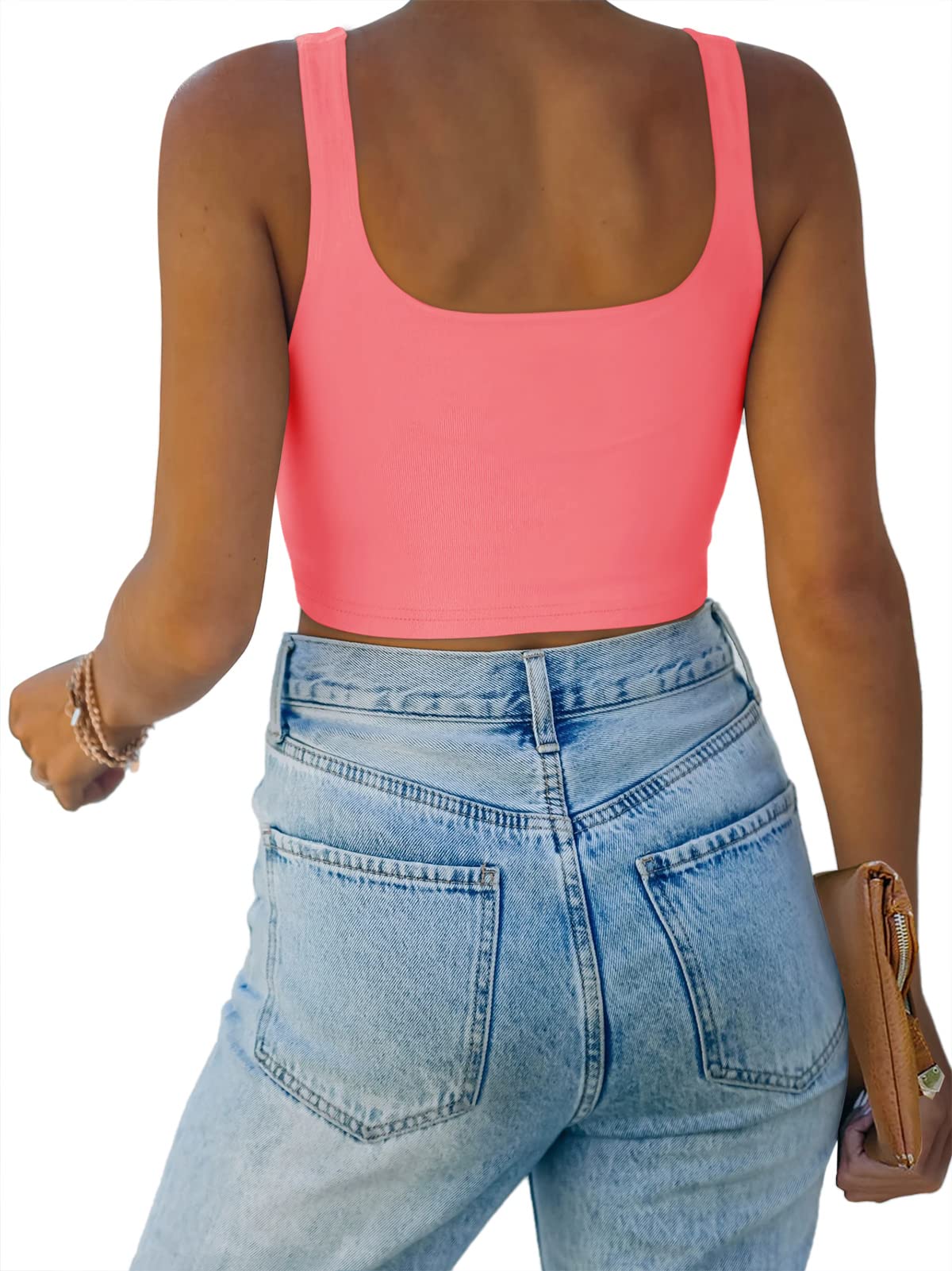 🌸Versatile,can be worn in many different ways!This square neck crop top for teen girls/women is basic and chic.Cute with yoga pants, joggers,skirts or high waist jeans!