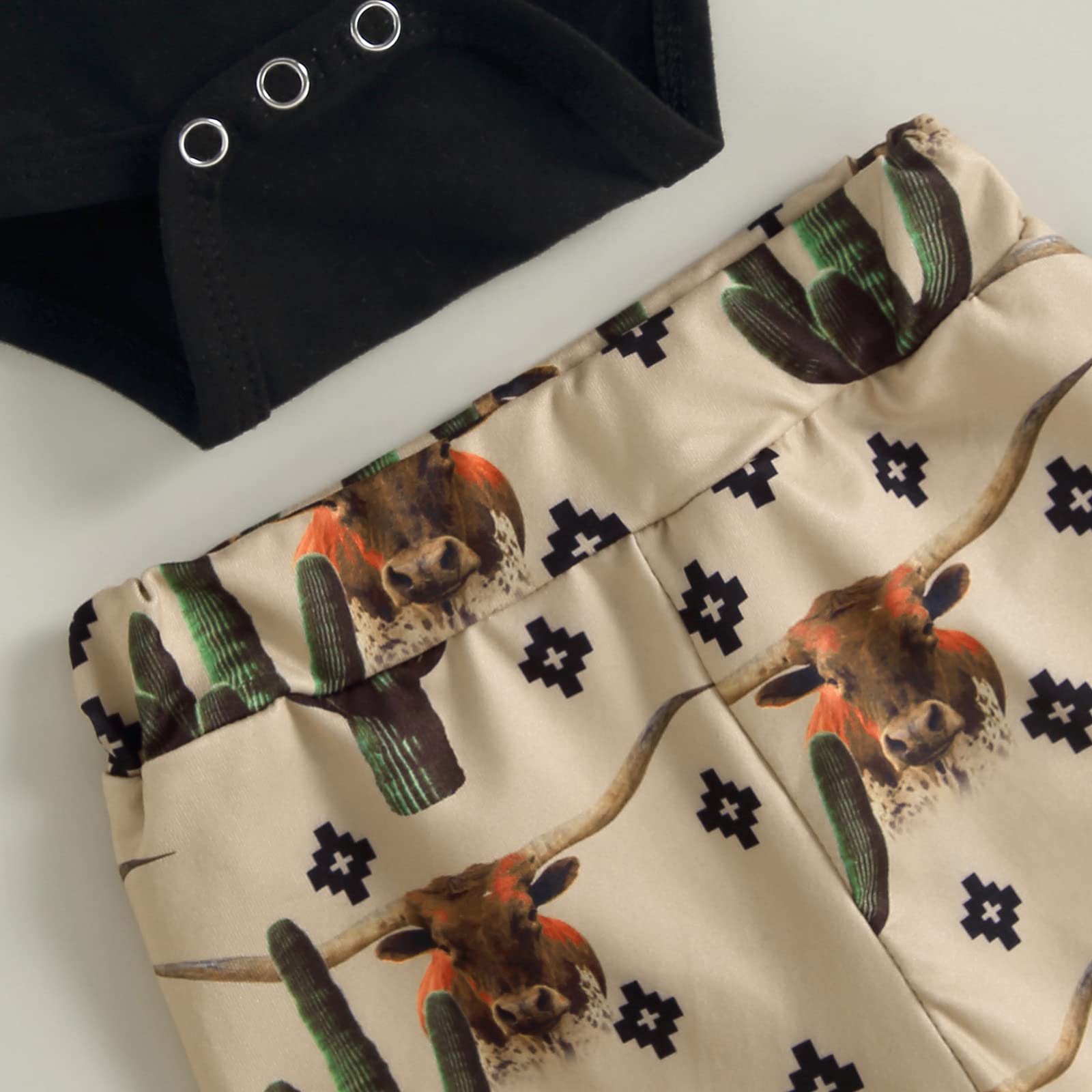 Unique design–Western Baby boy romper top with botton opening for easy wear ,cow and letter printed stylish bring impressive and eye-catching feelings . Elastic waistband long pants make for easy dressing and bring convenience for movement. Your boy will be the handsome one.