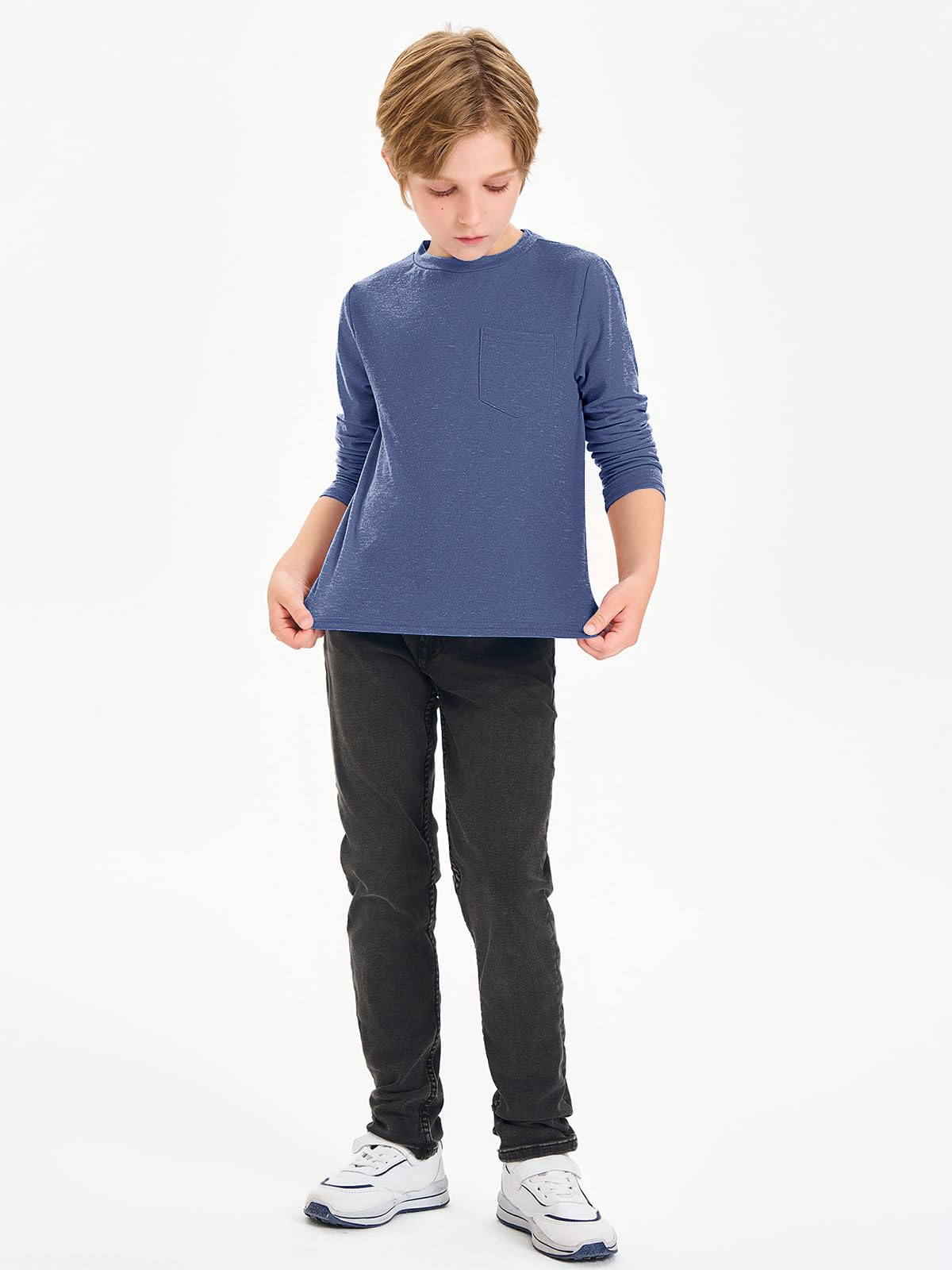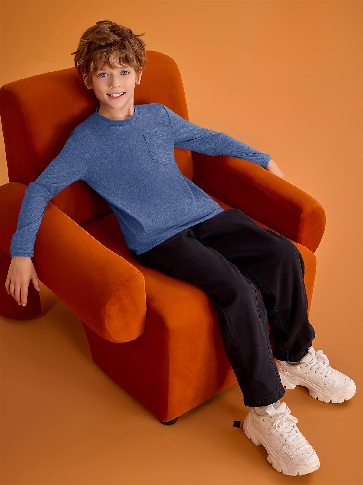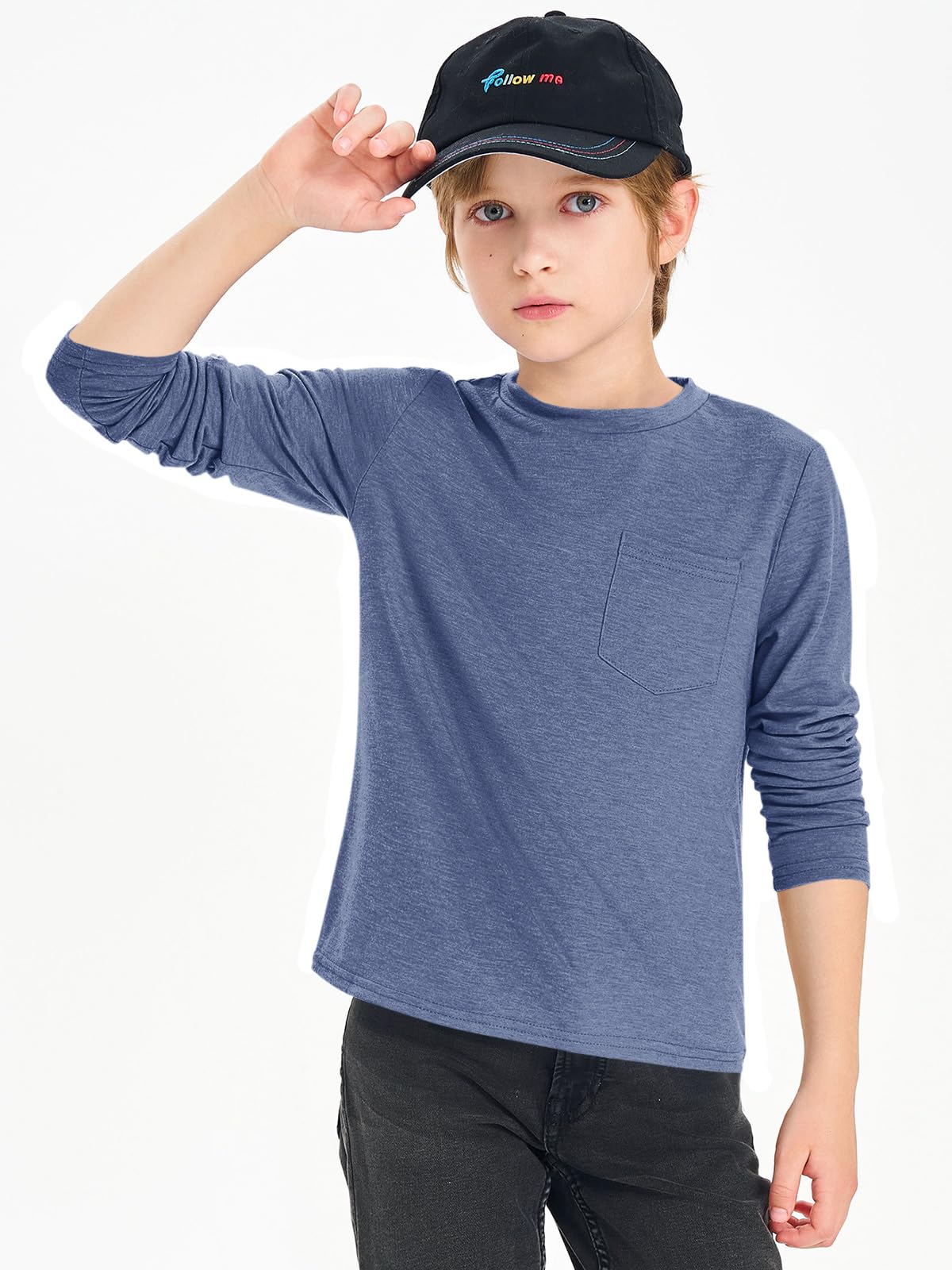 Design: Boys fall t-shirt, long sleeve shirts, basic tees with chest pocket, classic round neck and regular length, it's a good choice for your kids.The loose fit provides a comfortable fit for ease of wear and movement. Available in a range of solid colors, they offer a clean, versatile look that easily matches any bottom, making them a wardrobe staple for boys