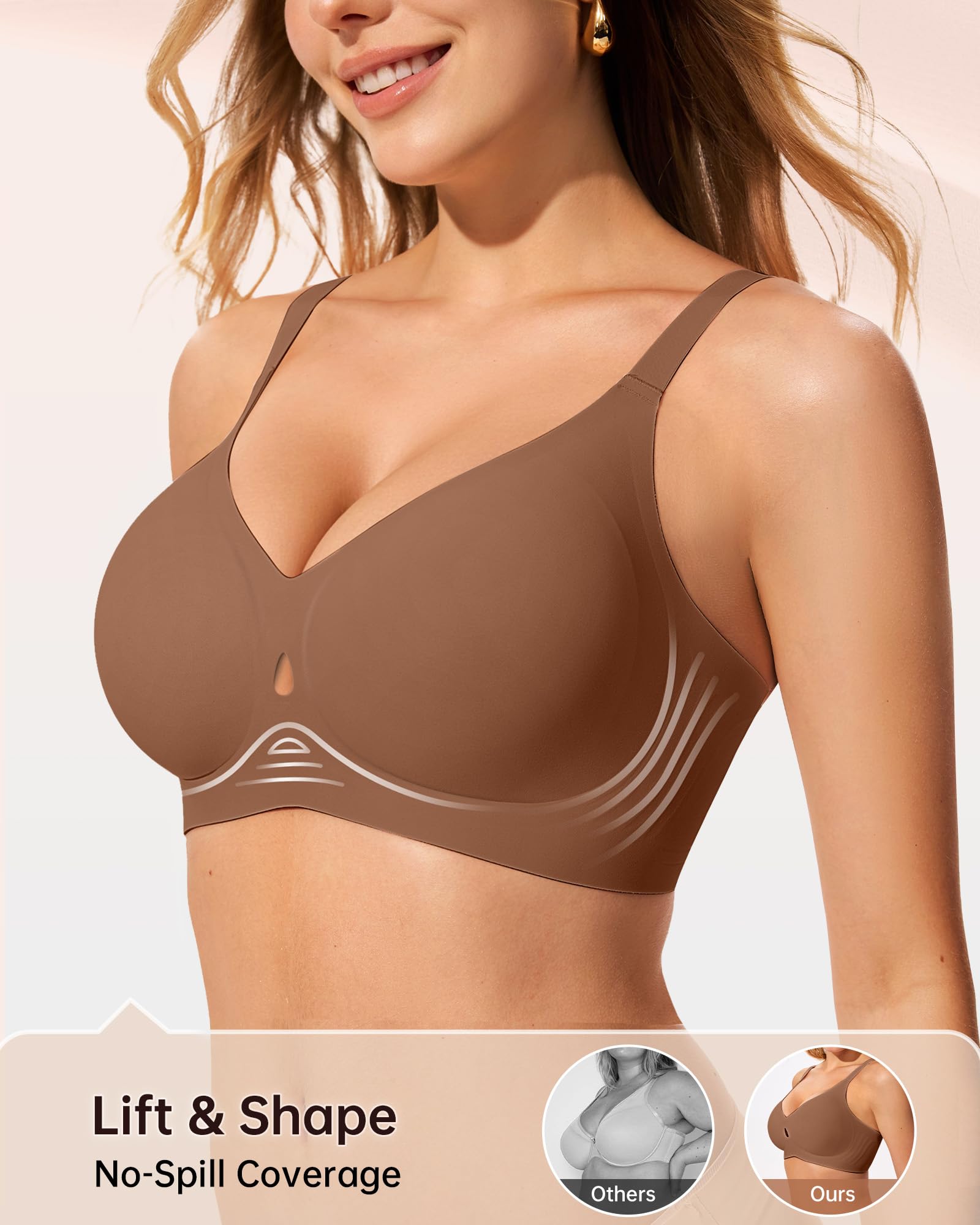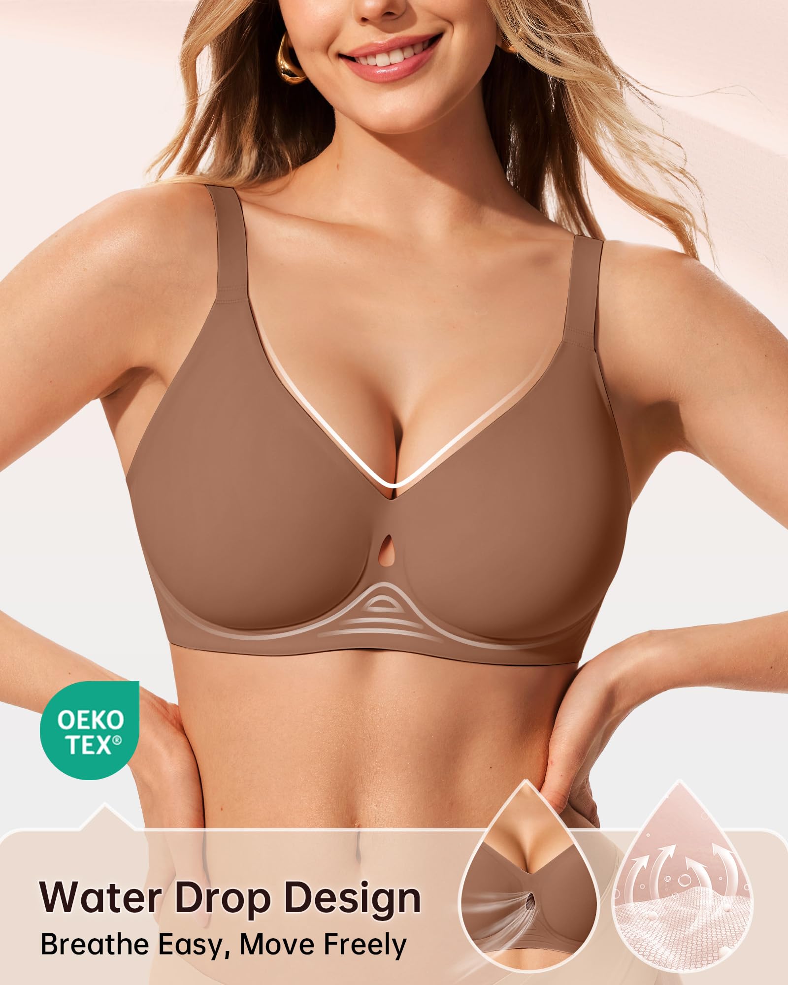 【Breathable Hollow Water Drop Design】Delicate water drop cutouts combine breathability and elegance in LetsJoli wireless bras for women, creating a comfortable experience while enhancing comfort and fit. The breathable hollow cutouts enhance airflow, keeping you cool and dry during extended wear and improving overall comfort