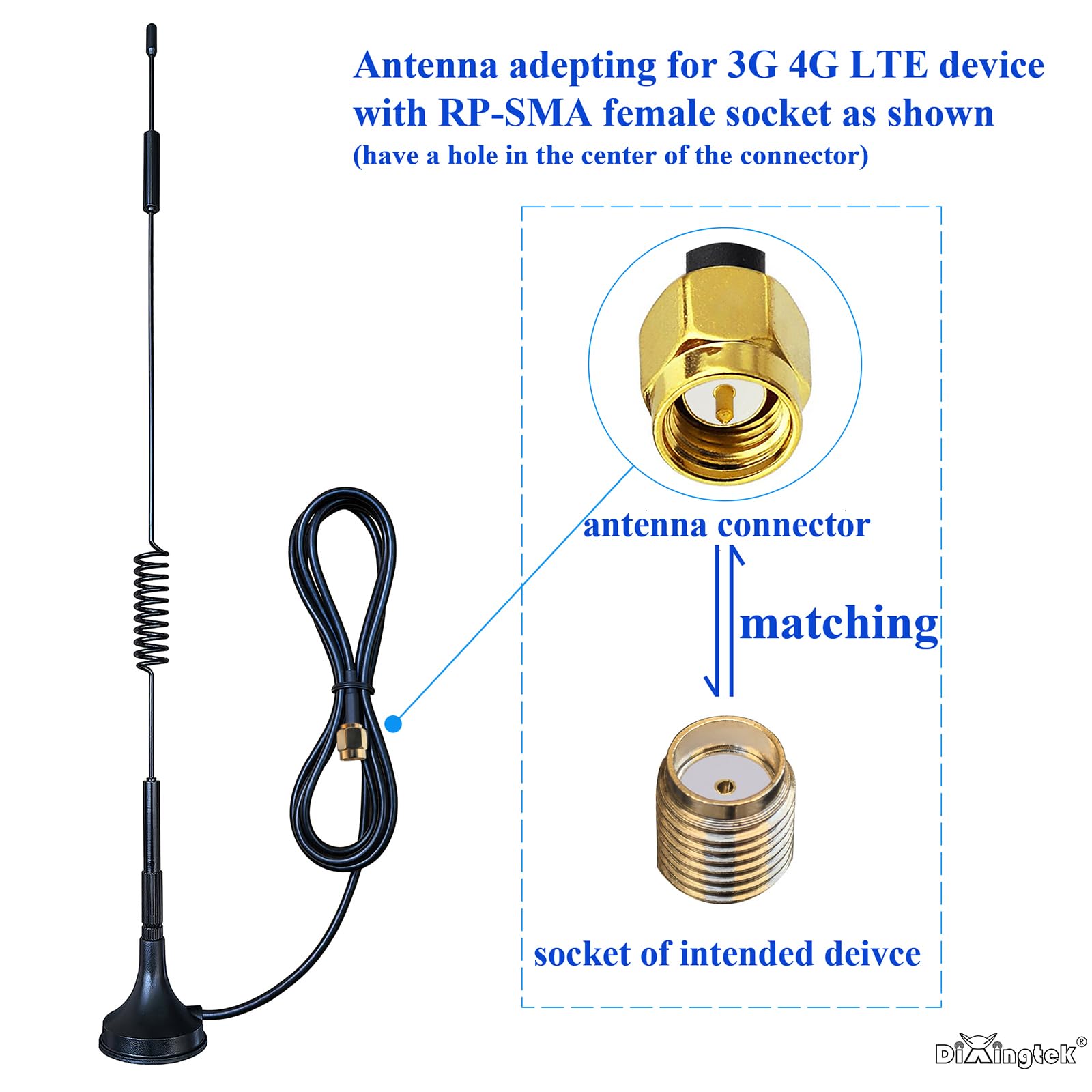Frequency range 698-960MHz and 1710-2700MHz; magnetic base mounting; 1meter/3.2ft cable length; SMA male connector; antenna efficiency up to 65%; suitable for most network carriers. Package contains: 2 x Antennas;