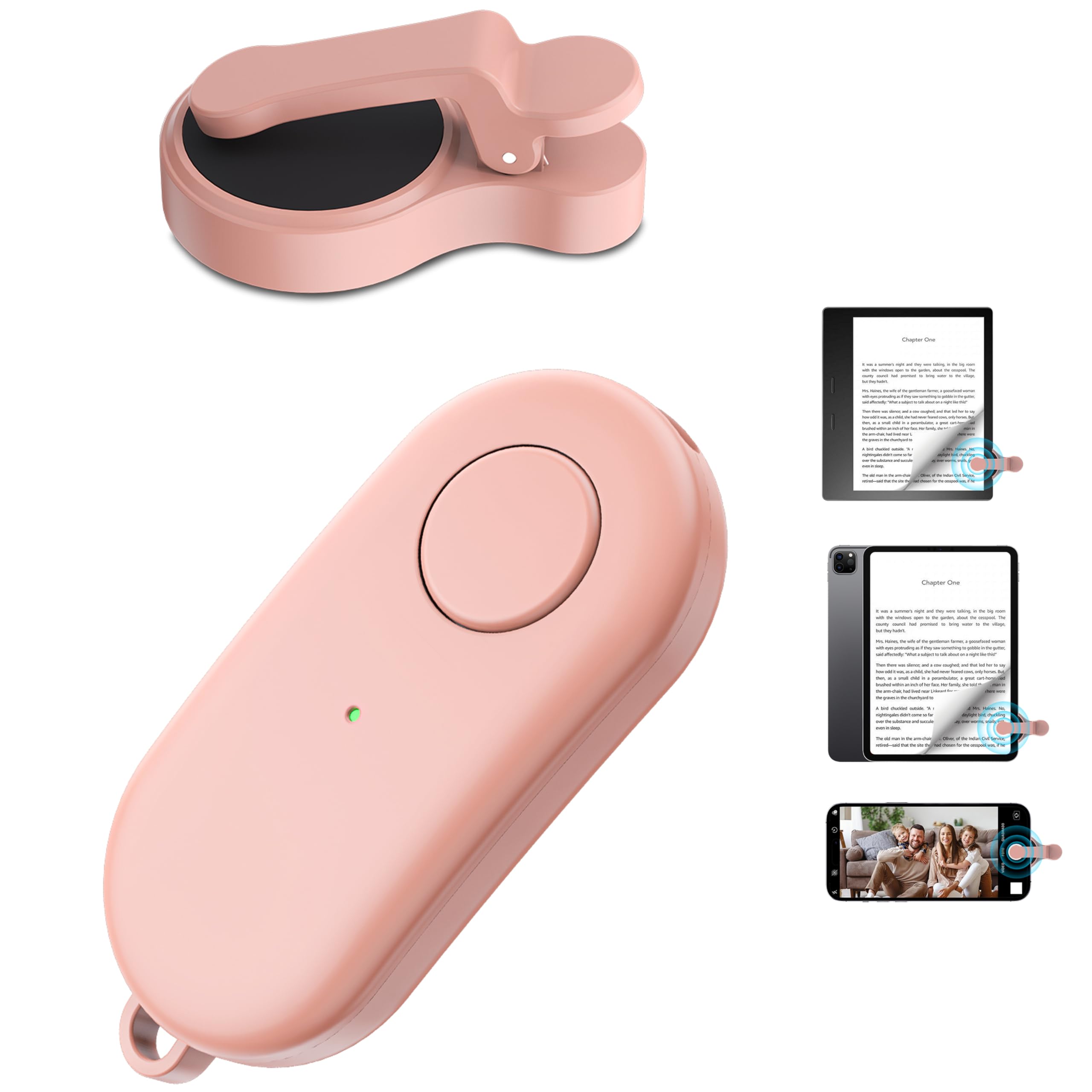 Wireless Remote Control:Clip the page turner on the shooting shutter to realize remote photo or video, it solves the awkward situation of taking outdoor pictures without assistance. Whether for selfies or group photos, this remote button effortlessly handles it