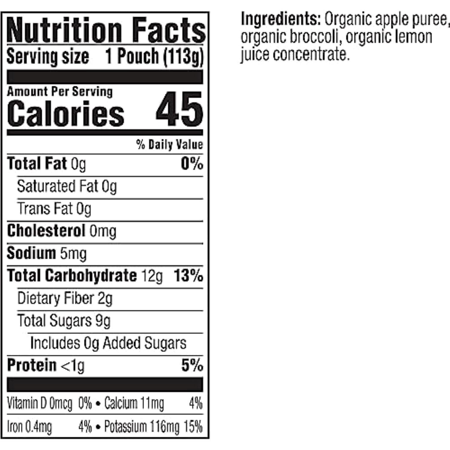 MADE WITH NATURAL FLAVORS: Contains organic apple puree, organic broccoli, and organic lemon juice concentrate