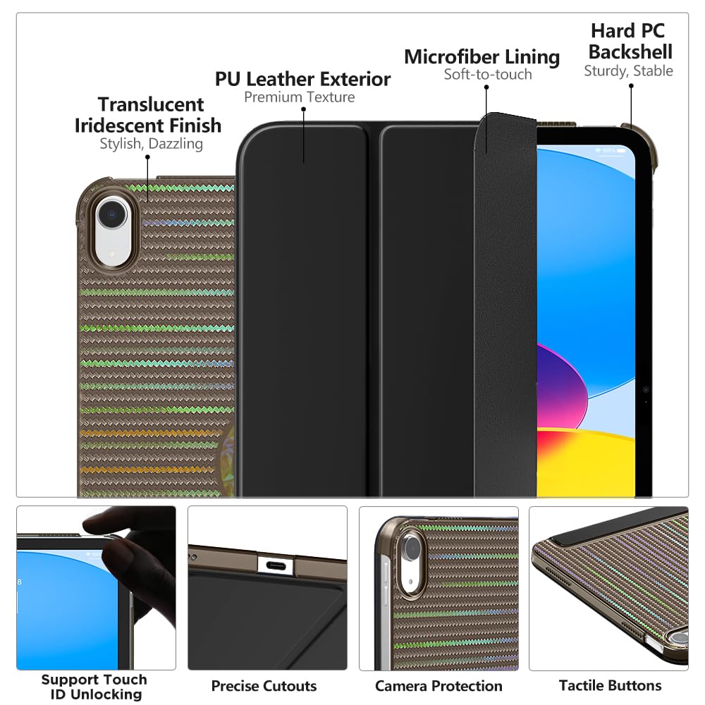 Excellent Quality : Our iPad 11th/10th Gen 11/10.9-inch PrisVibe case (2025/2022), a soft microfiber lining, and a dazzling iridescent translucent PC back shell, providing full and reliable protection for your tablet.