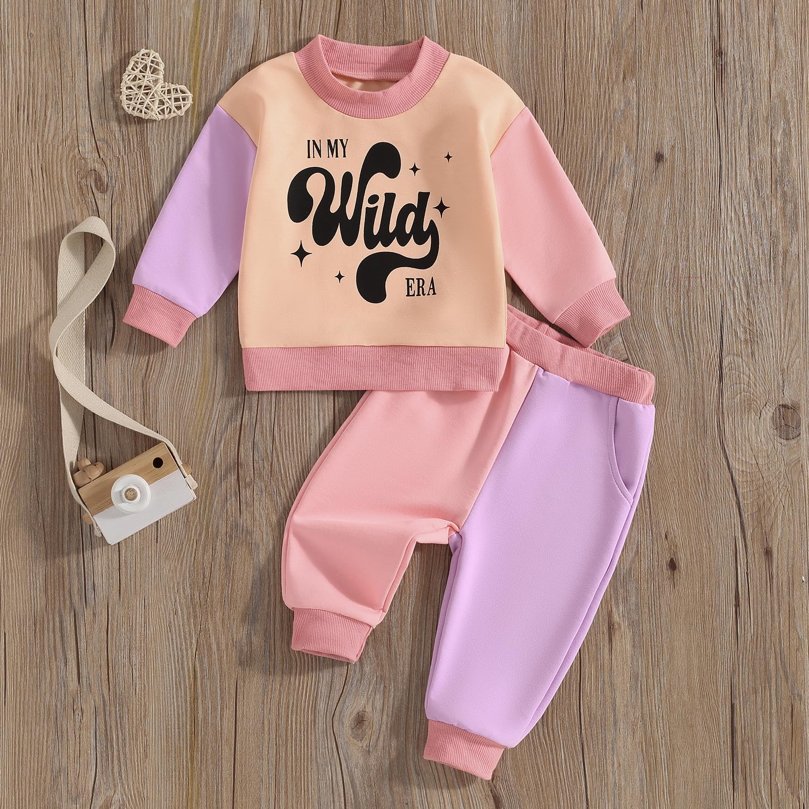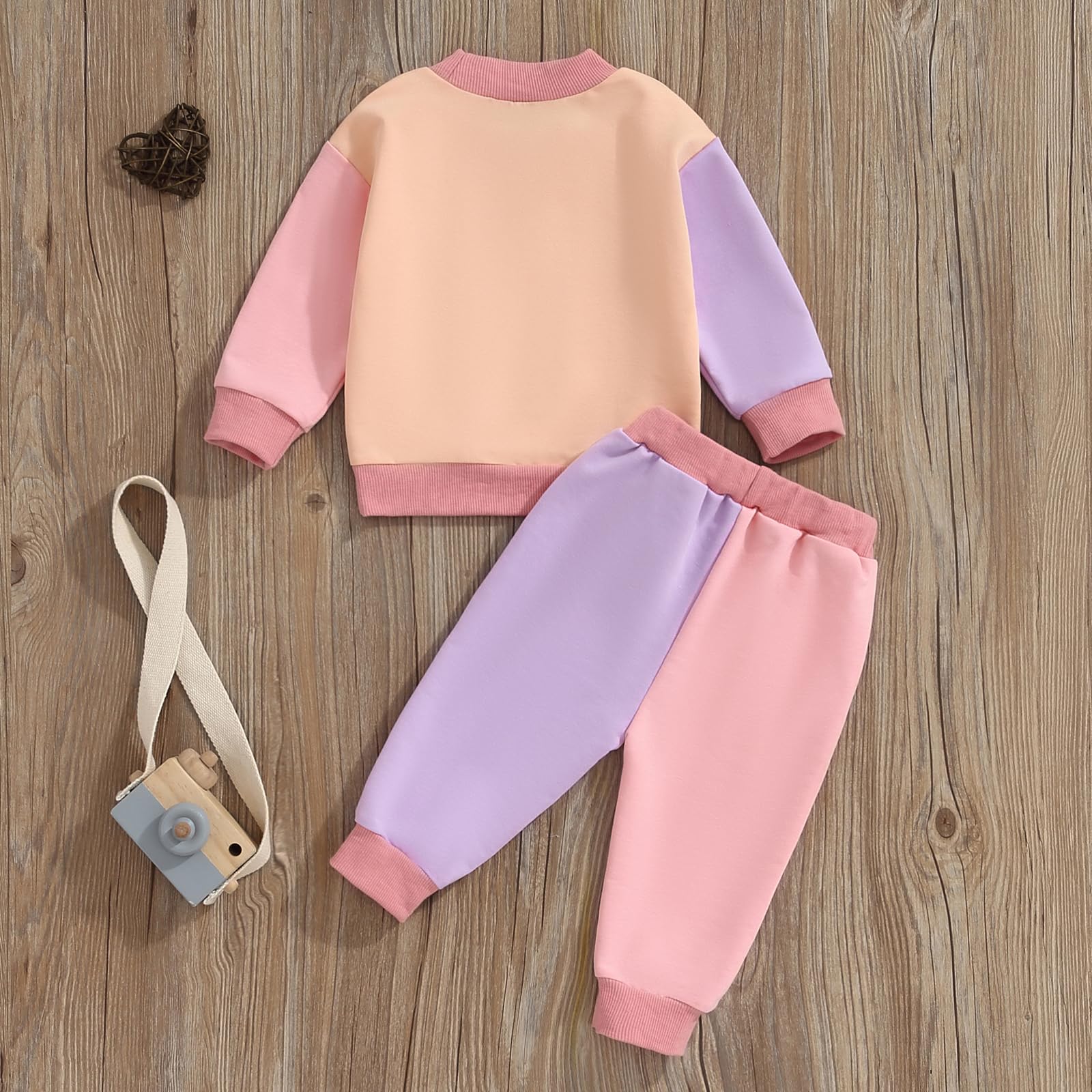 Design: Baby girl fall winter clothes sets, contrast color, long sleeves, toddler pullover sweatshirt tops & elastic waist jogger pants with pockets, perfect for toddler girls wearing in spring, fall and winter.