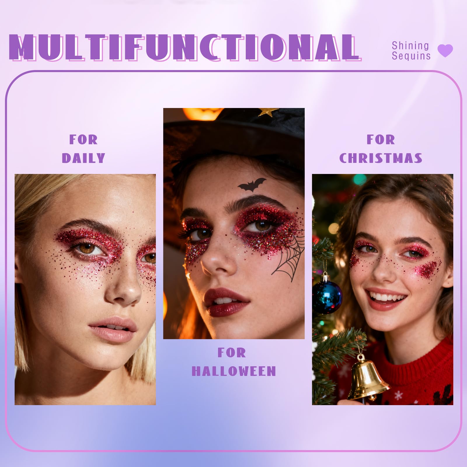 Wide Applications: This cosmetic chunky glitter gel is perfect for your body, face, eyeshadow, lips, cheeks, hair, nail art, and more, and perfect for rave hair accessories. It has a strong glowing effect in day and night, especially suitable for parties, weddings, stages and music festival, making you the glamorous focus of a passionate revelry
