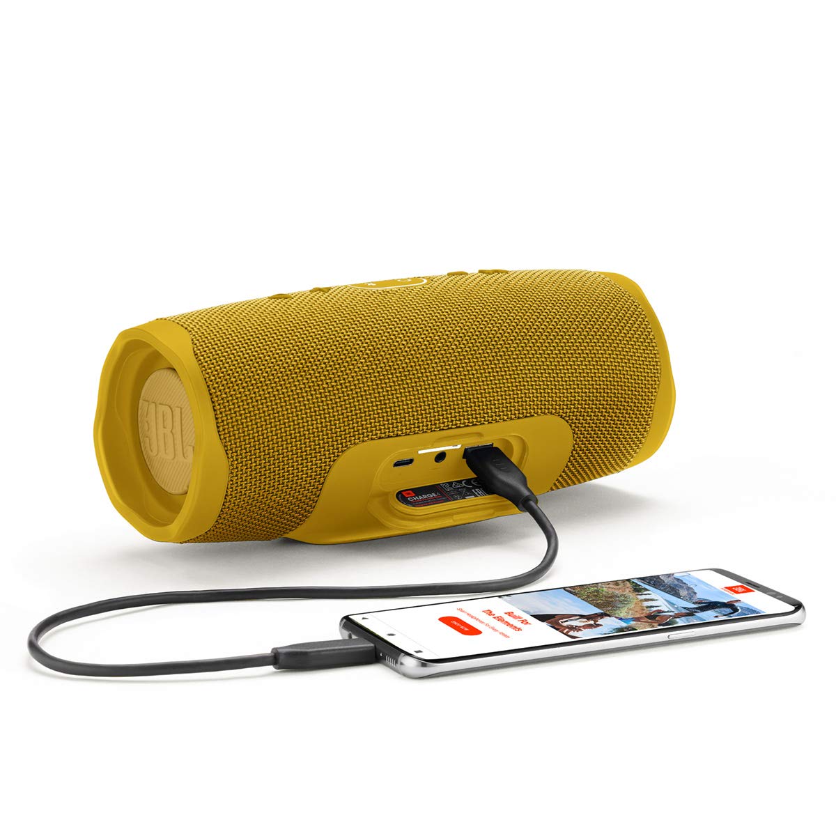 Introducing the JBL charge 4 portable Bluetooth speaker with full-spectrum, powerful sound and a built-in power bank to charge your devices. It Features a proprietary developed driver and two JBL bass radiators that intensify sound with strong deep bass. Its high-capacity 7500mAh rechargeable li-ion battery provides up to 20 hours of playtime. The speaker carries a convenient USB charge out to quickly charge your devices, such as your smartphone, so you will never run out of power again. The charge 4 features a rugged design, IPX7 waterproof rated exterior and comes in a suite of cool colors. Together with JBL connect+ it can wirelessly link more than 100 JBL connect+ enabled speakers to elevate your listening experience