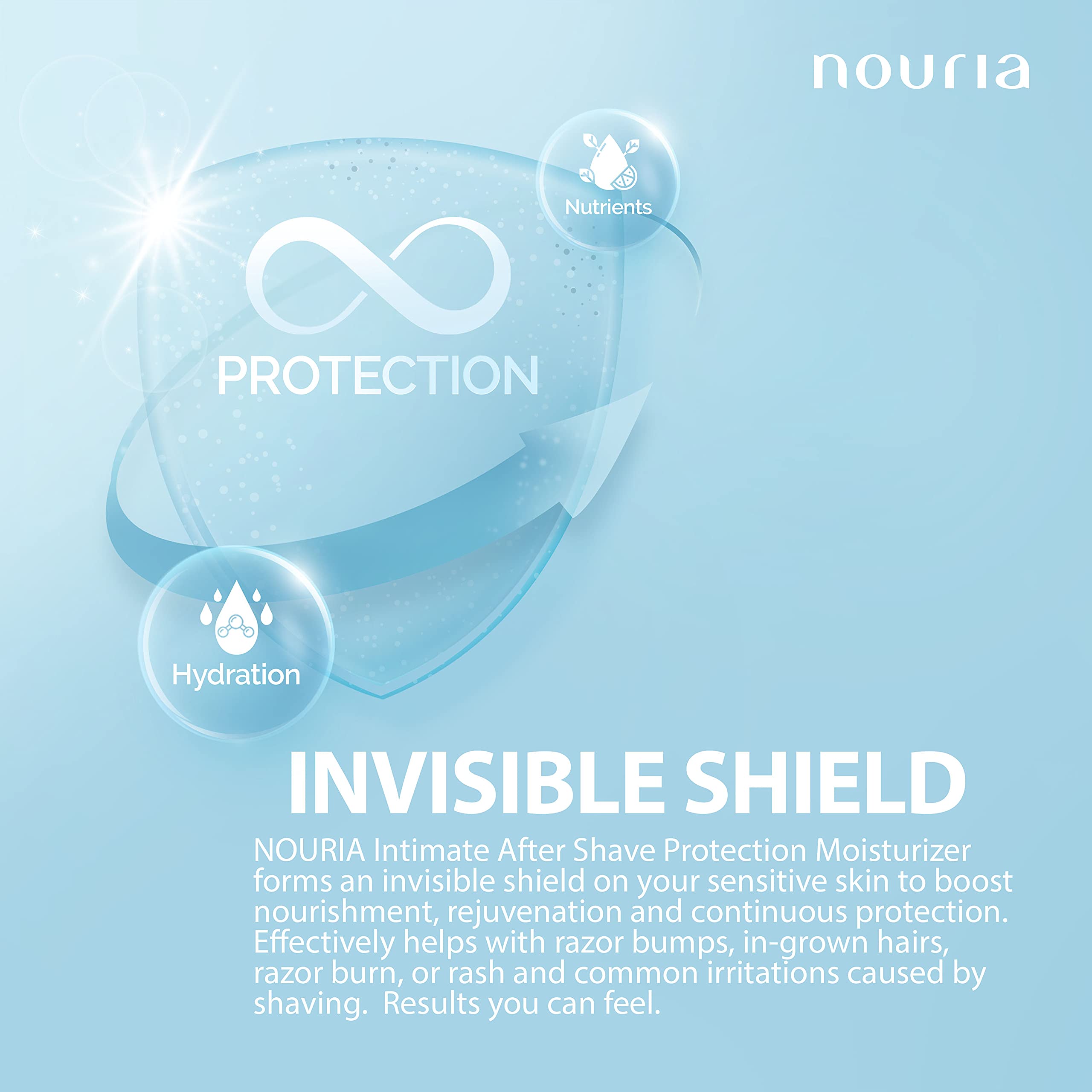 NOURIA Pre-Shave Elixir Oil contains HydroLock, meticulously formulated with concerted mix of 12 botanical and organic essence and extracts that are rich in deep-hydrating and long-lasting moisturization properties. It further fortifies your intimate skin for maximum moisture retention and prevents moisture loss. Nourishing areas normally forgotten or unnoticed. It reduces ingrown hair, razor burn, razor bump, itchiness and other irritations commonly associated with shaving.