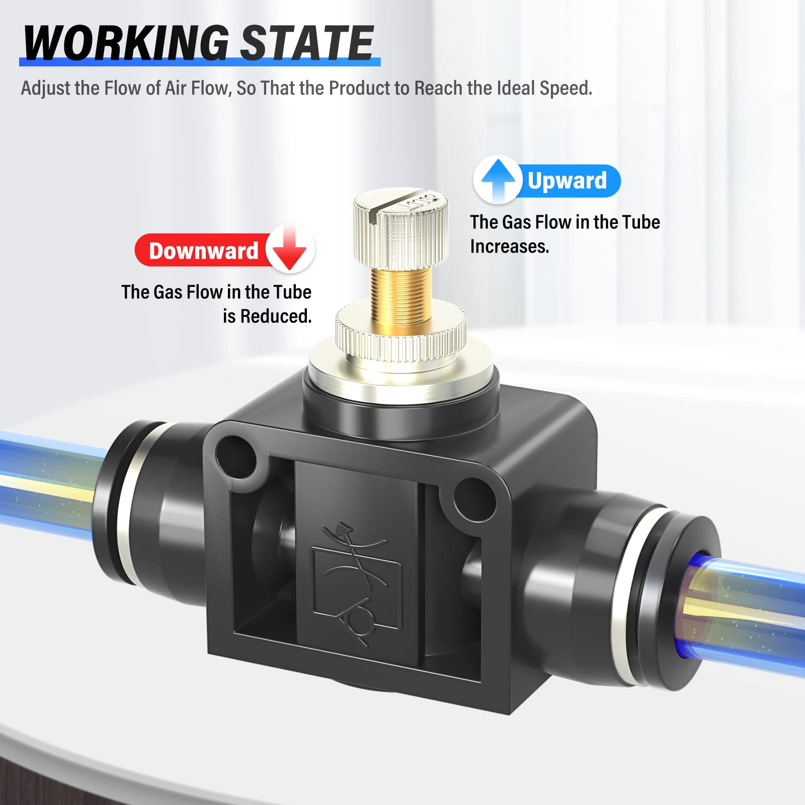 【Features】In-line air flow control valve for controlling the speed of low-speed pneumatic cylinders