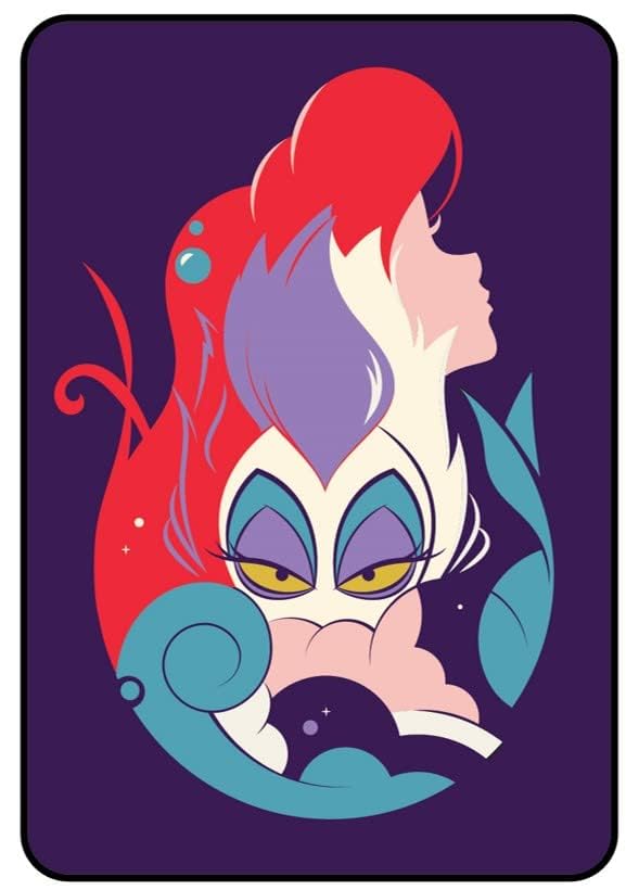DISNEY PRINCESS ARIEL DESIGN: This plush blanket features a bold, purple background with a vibrant graphic combining Princess Ariel and Ursula from the classic Disney film "The Little Mermaid."