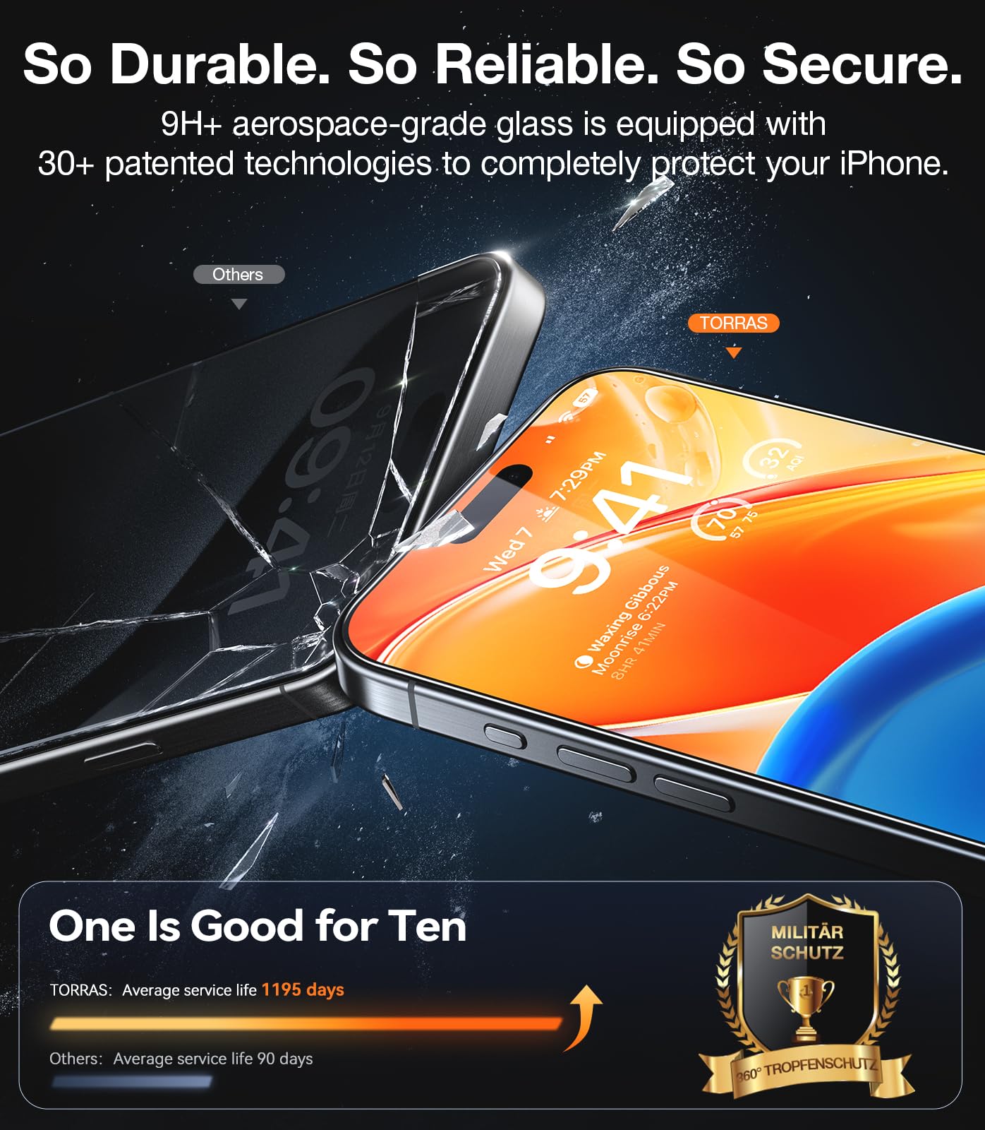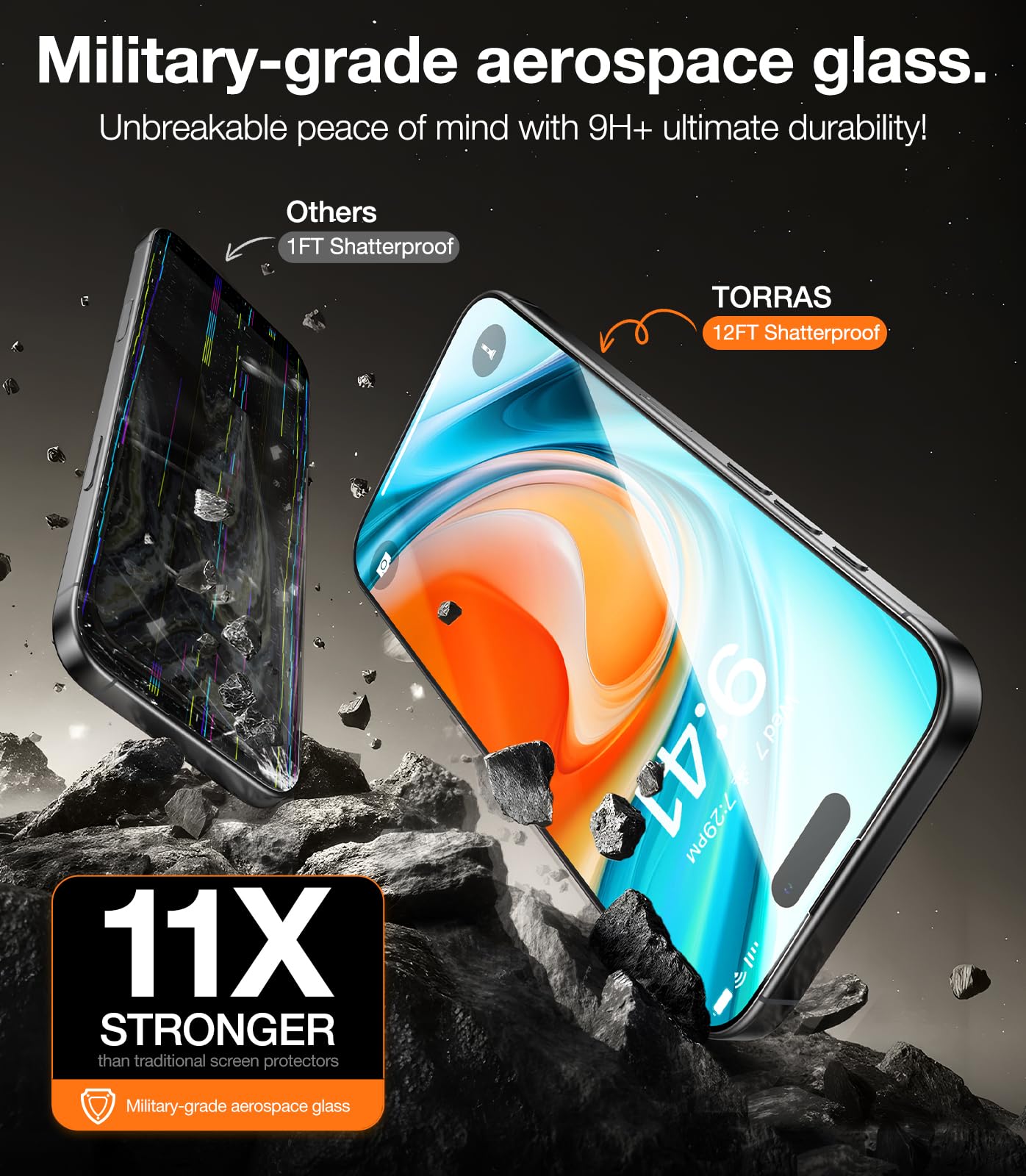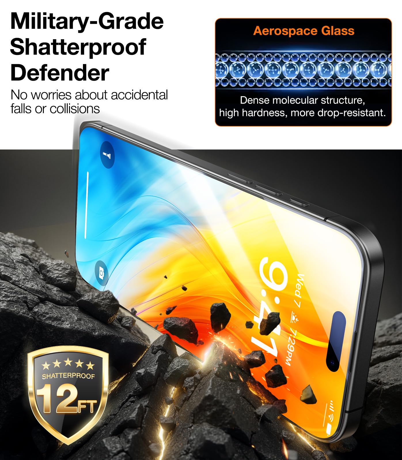 (No.1 Durability: Military-Grade 9H+ Aerospace Glass) Compatible with iPhone 16 Pro. It’s the world’s first screen protector made with Military-Grade 9H+ Aerospace Glass—the very same material used in spacecraft. Endorsed by Top Tech Creators. With over 138.86 million packs sold globally, there has not been a single reported case of screen breakage.