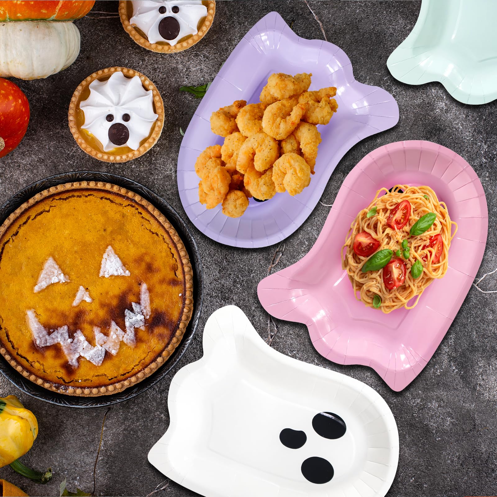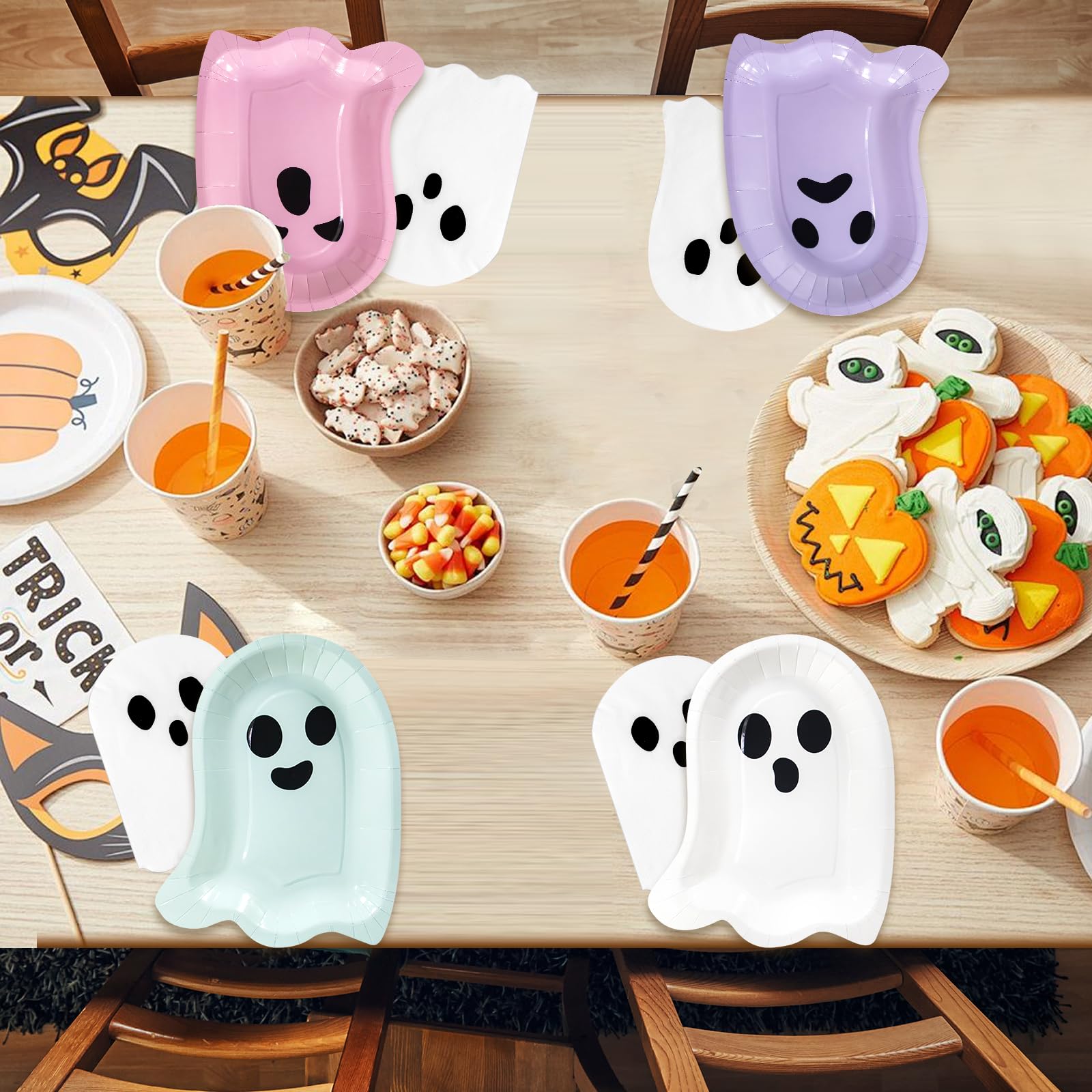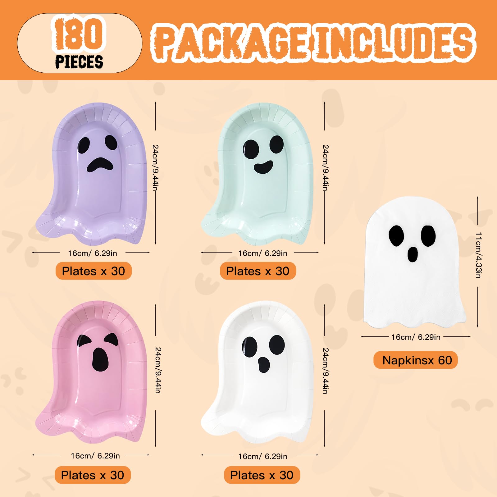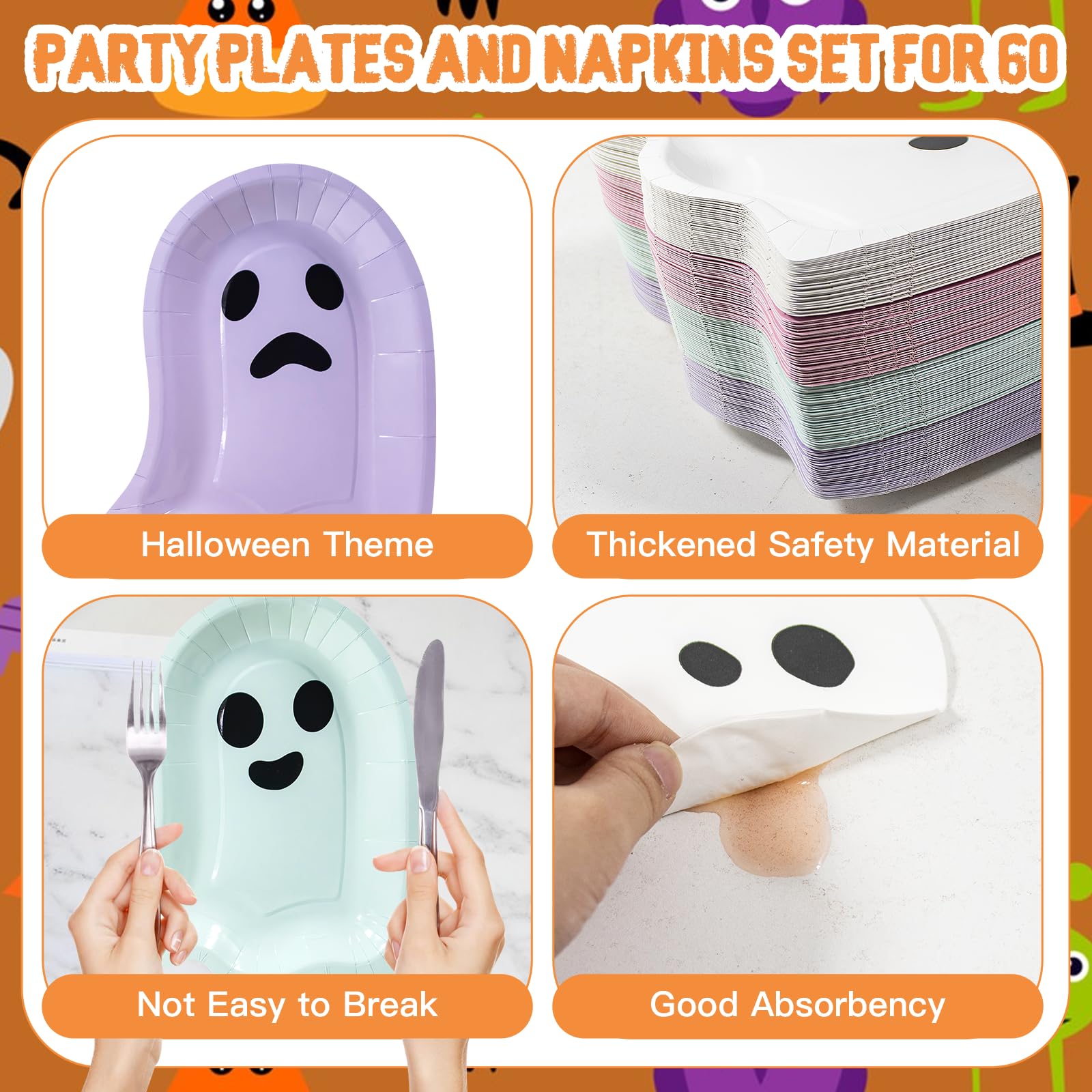 180 Pcs Plates and Napkins Set: This set includes 120 Halloween ghost paper plates and 60 napkins, perfect for serving up to 60 guests. From casual dinners to large celebrations, this all-in-one solution ensures a stylish, hassle-free dining experience every time