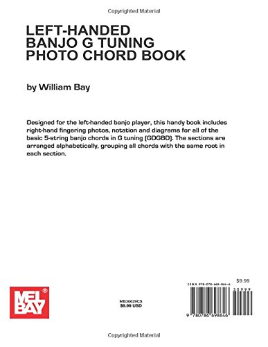 Designed for the left-handed banjo player, this handy book includes right-hand fingering photos, notation and diagrams for all of the basic 5-string banjo chords in G tuning (GDGBD). The sections are arranged alphabetically, grouping all chords with the same root in each section.