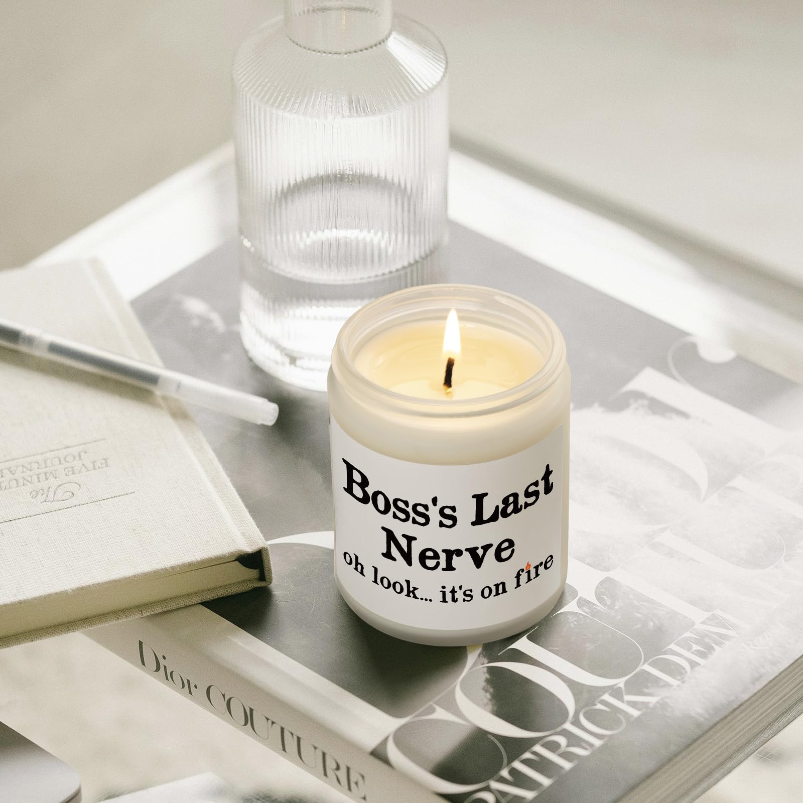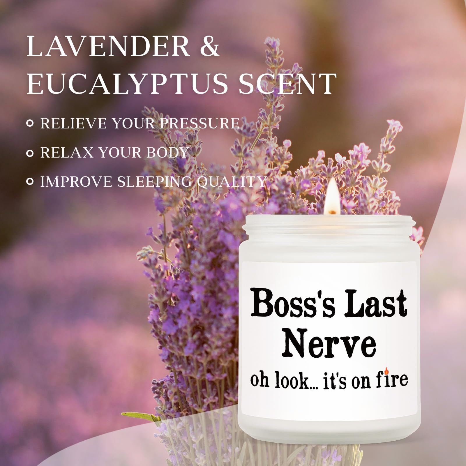 BEST BOSS GIFTS: Say it with more than words - express your appreciation with our distinctively curated aromatherapy candle. Emblazoned with the witty and meaningful quote, "Boss's Last Nerve... Oh look... it's on fire", this makes perfect gifts for boss. Celebrate Boss's birthday, chritsmas, or any day, by acknowledging their unwavering commitment and relentless hard work with this thoughtfully crafted present.