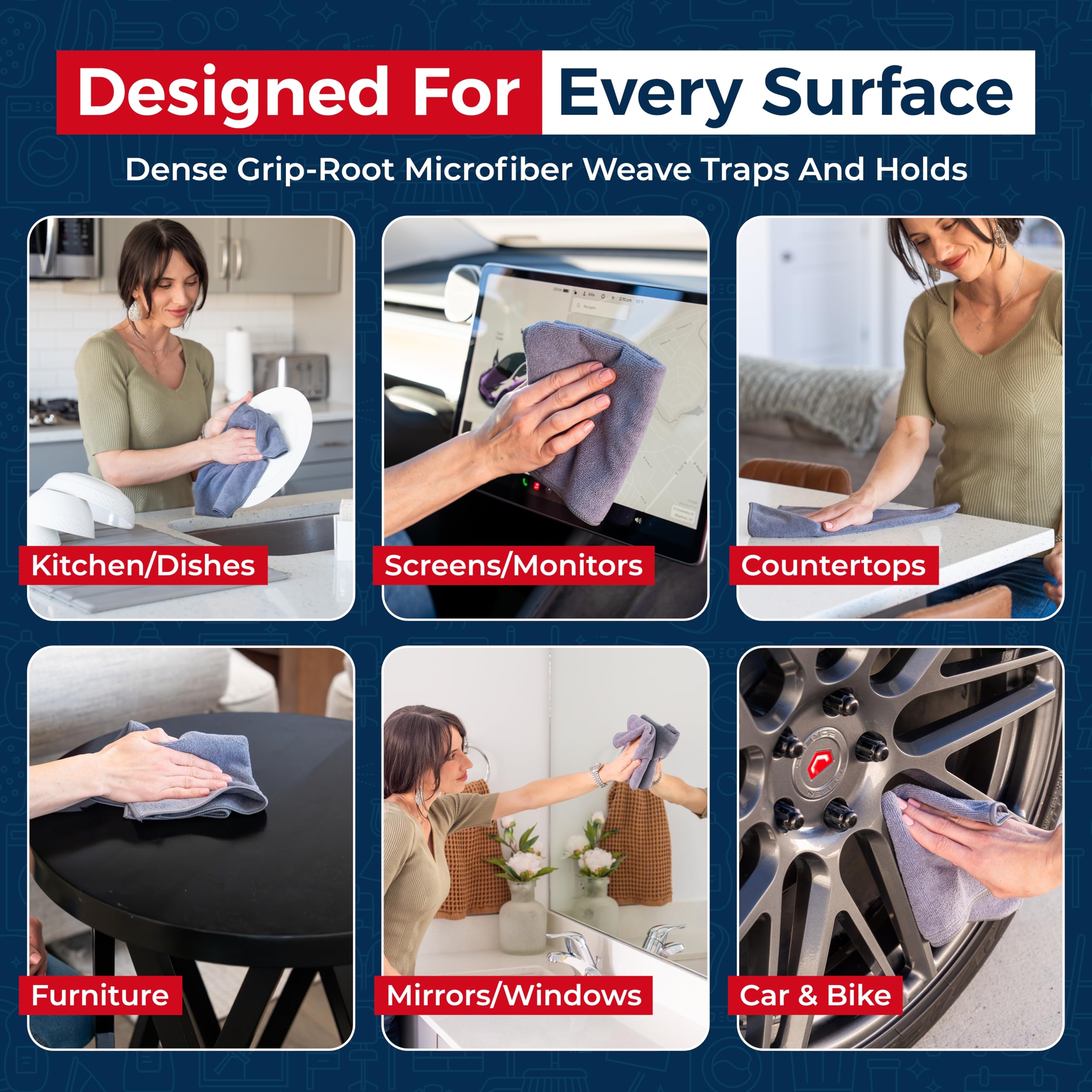 UNRIVALED POWER - TEST THIS GRIP-ROOT technology risk-free for 30 full days. With a 2.5mm thick design, it LOCKS AWAY dirt, dust, grime, spills, and messes better than any other high-performance cleaning rags you’ve tried.
