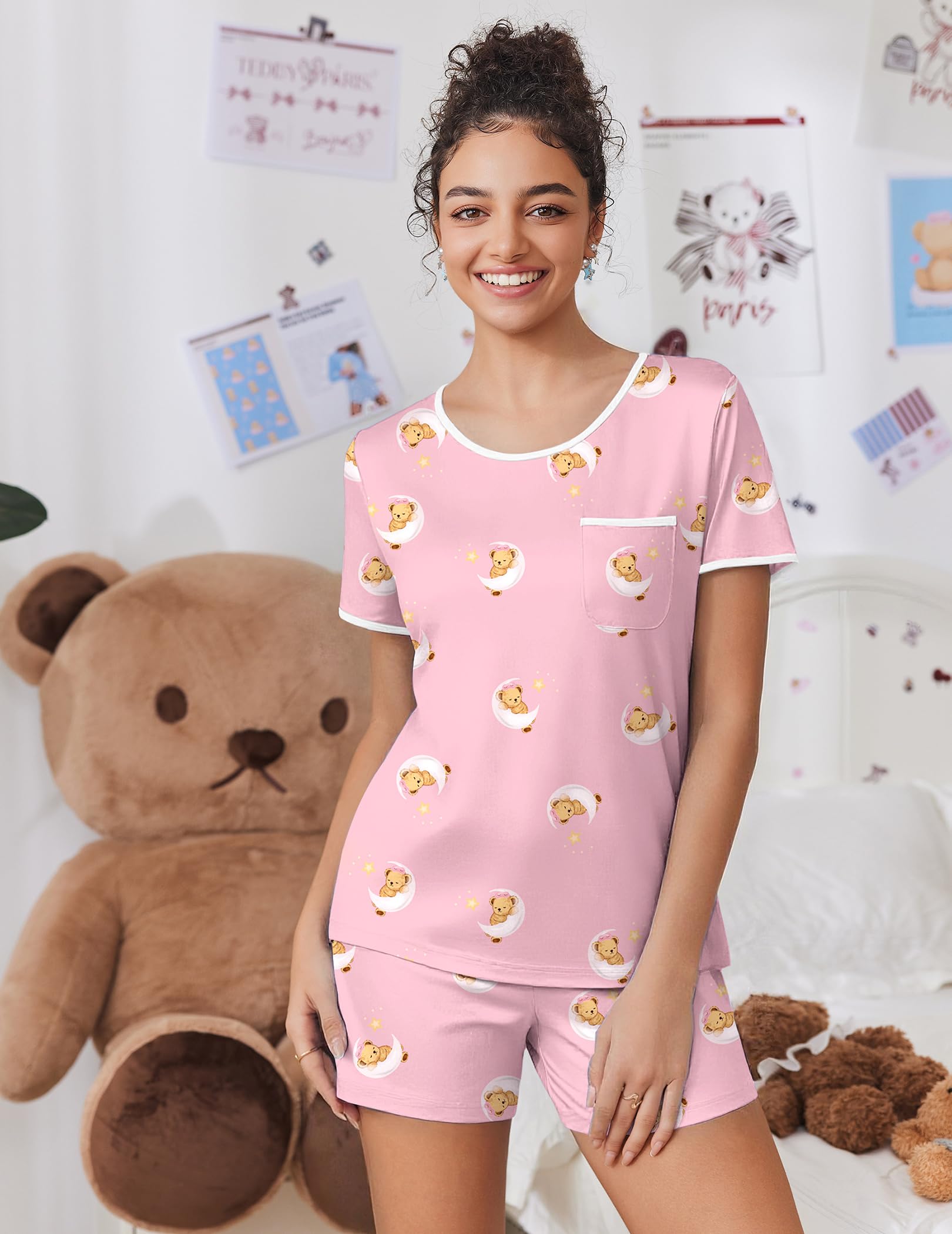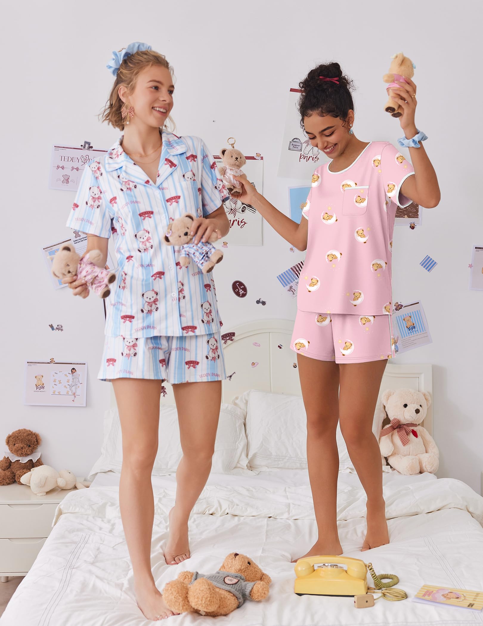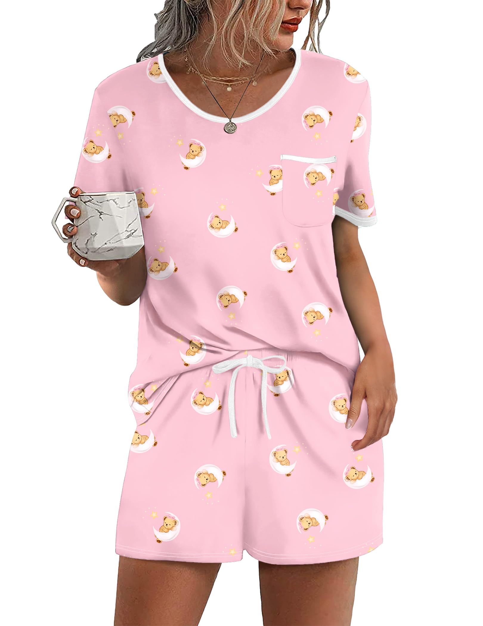 Two Piece Pajama Set: Sleepwear with tops and shorts has a loose fit for added comfort. Extra soft, comfy, and breathable sleepwear set for bedtime