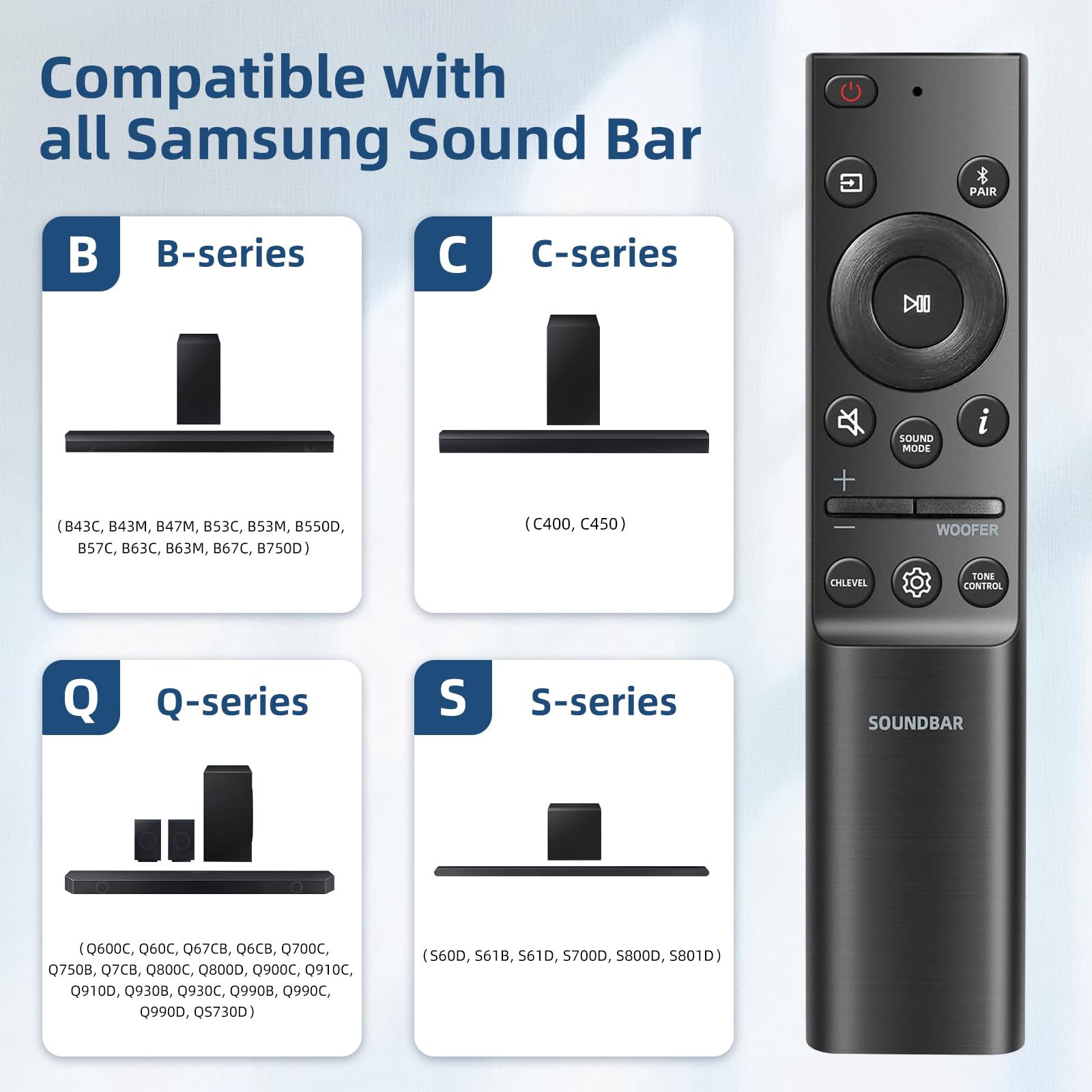 【Soundbar Compatibility】Works seamlessly for 2019–2024 Samsung soundbars, including: Q-Series (Q600A/B/C/D, Q700A/B/C/D, Q800A/B/C/D, Q930B/C/D, Q990B/C/D), the HW-Series (the entire HW-Q600 to HW-Q990 lineup and some older models), and the entire Soundbar lineup. HW-K360/KM36C, etc.)