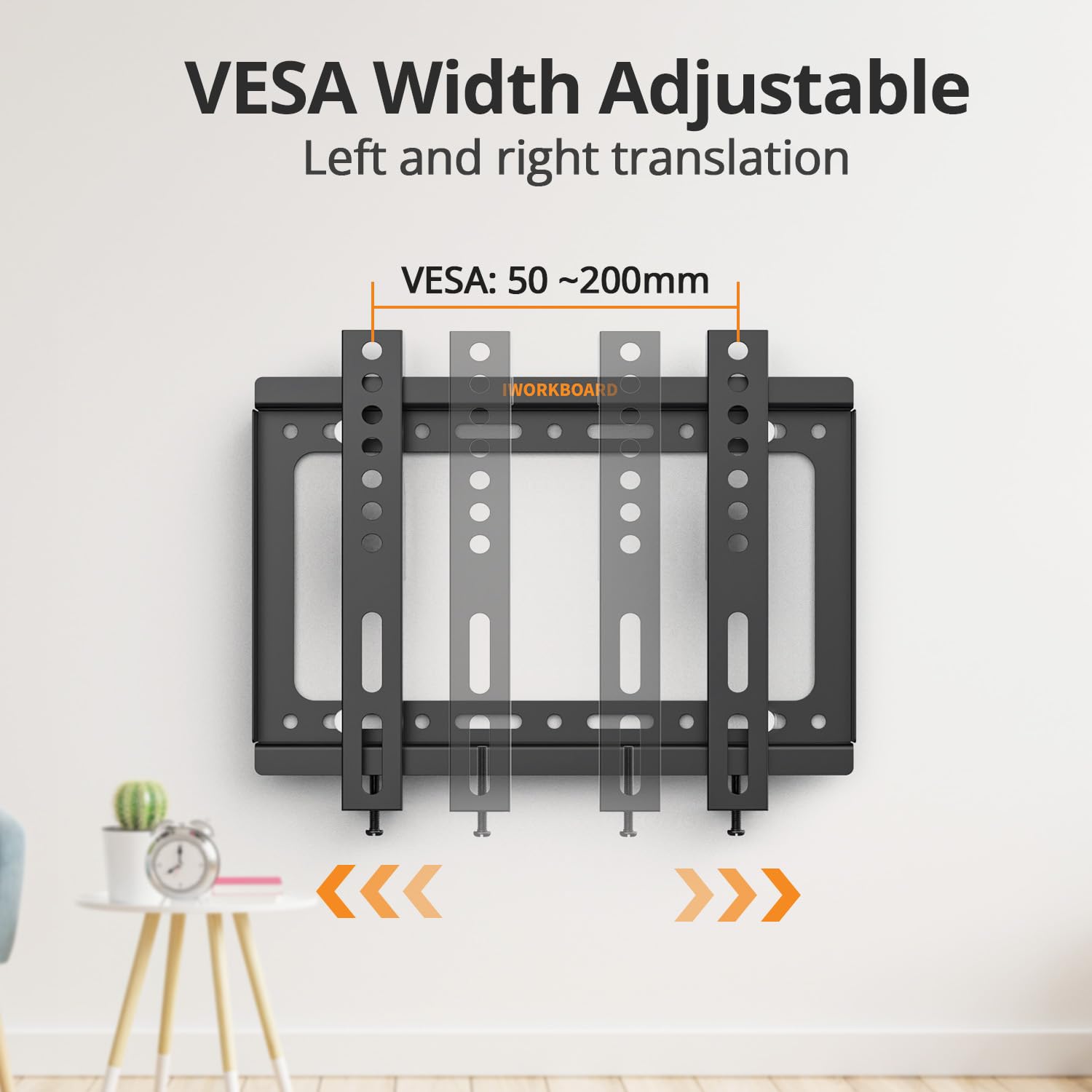【VERSATILE VESA FIT】Easily mount your TV with support for common VESA patterns including 50x50mm, 75x75mm, 100x100mm, 100x200mm, 150x150mm, 200x100mm, and 200x200mm, ensuring a perfect match for most flat-panel screens on the market