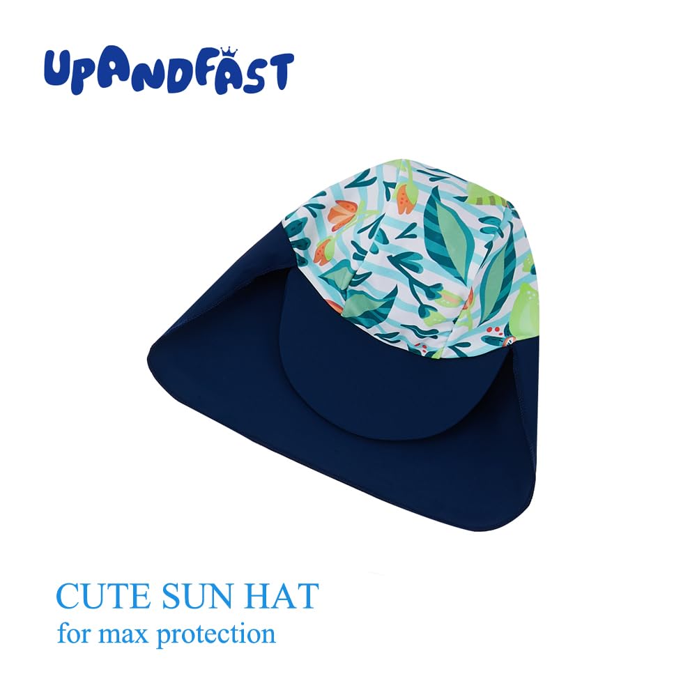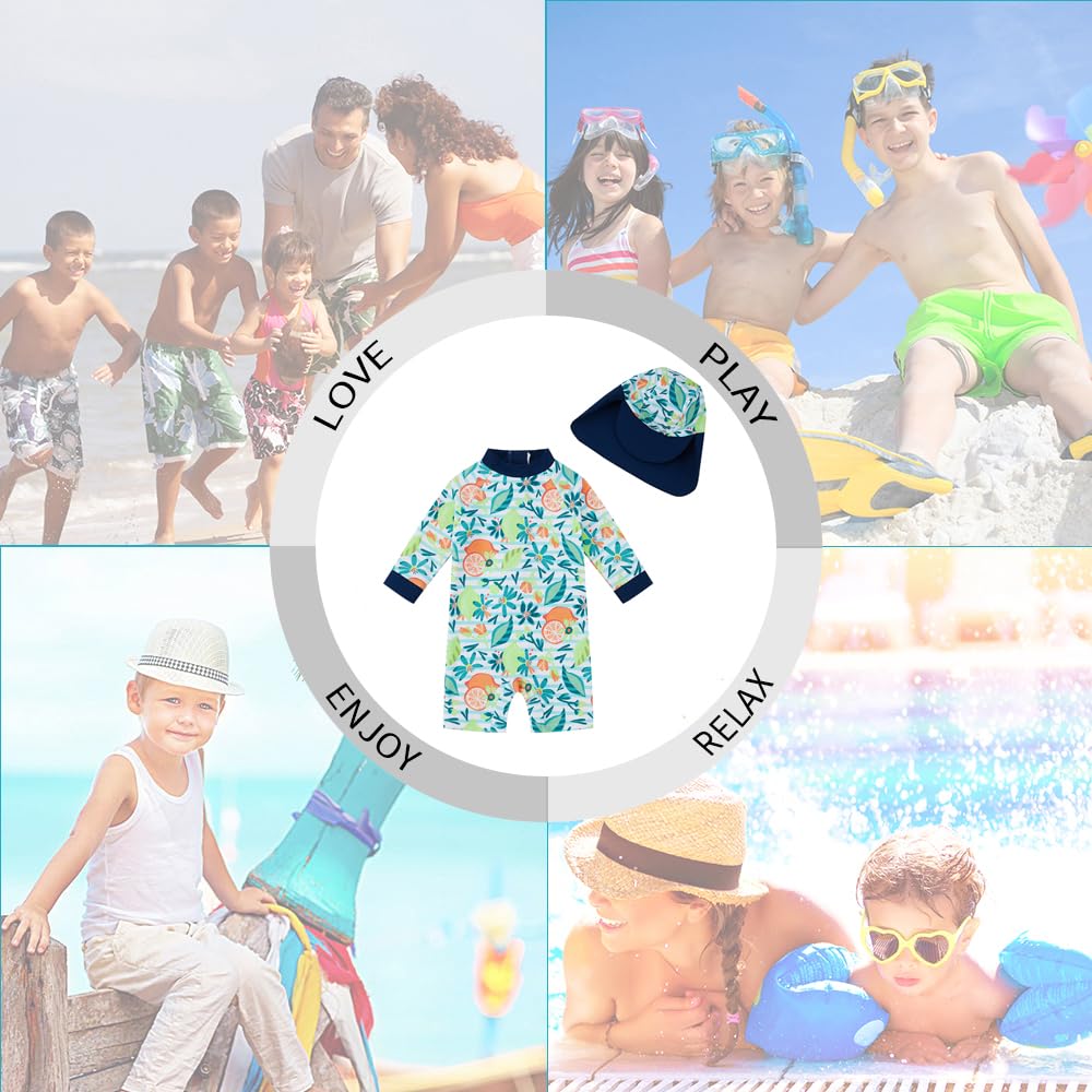 CUTE SUN HAT: Toddler rash guard that comes with a lovely hat, it covers baby's delicate face and neck. which can give baby more protection when playing at the sea, beach or under the sun