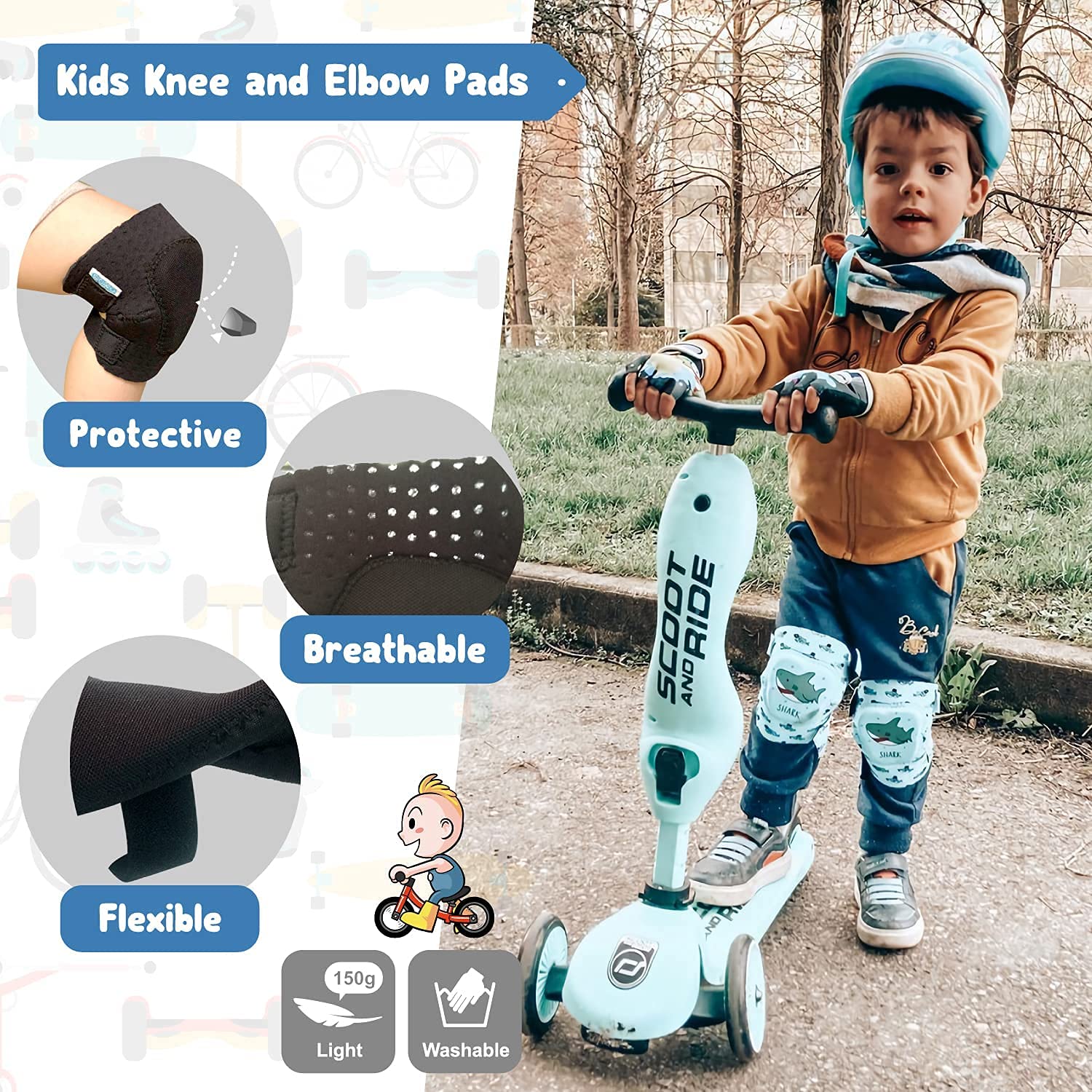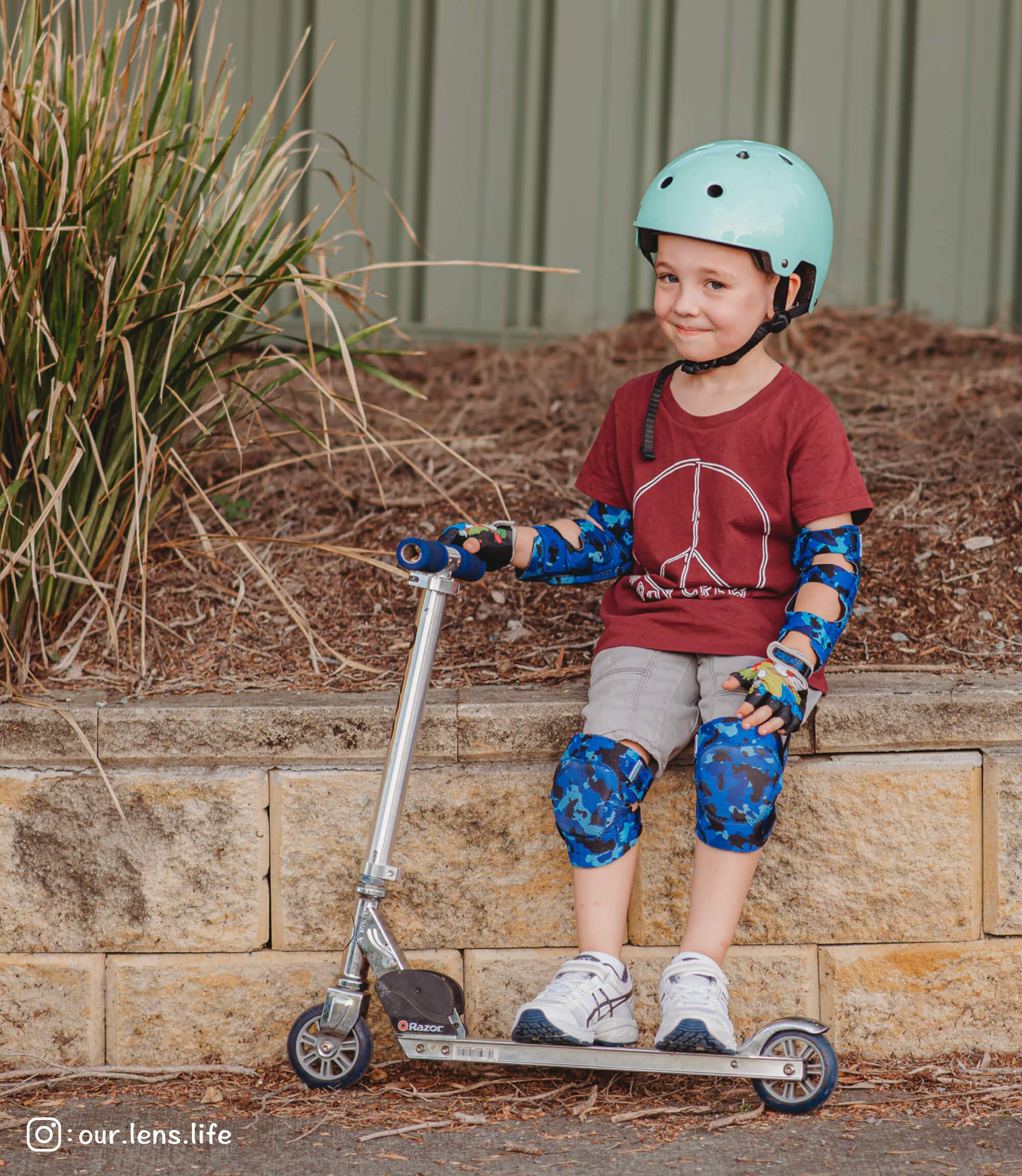 π πͺπππ§ ππ’ π¬π’π¨ πππ§- Simply Kids brings you a variety of protective gear to ensure your childβs safety. Weβll be providing you with a pair of kids knee pads, elbow pads, and bike gloves. Furthermore, weβll equip your child with a mesh bag and adorable stickers to personalize their own set.