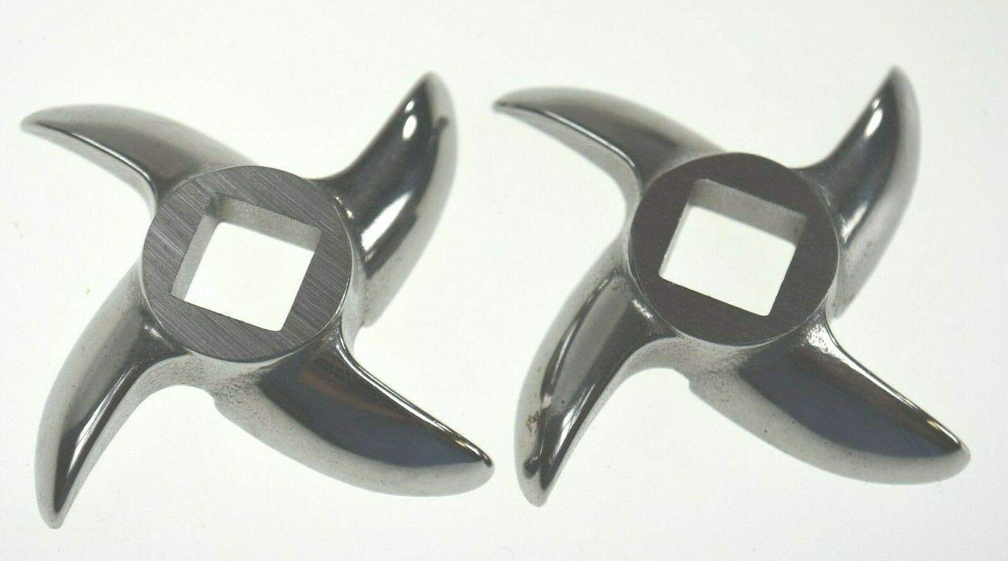 Stainless replacement blades for size #8 meat grinders from LEM Cabelas MTN Northern Tool and many other brands. MEASURE FIRST. Your round meat grinder disc should be 2 3/8" (60mm) diameter